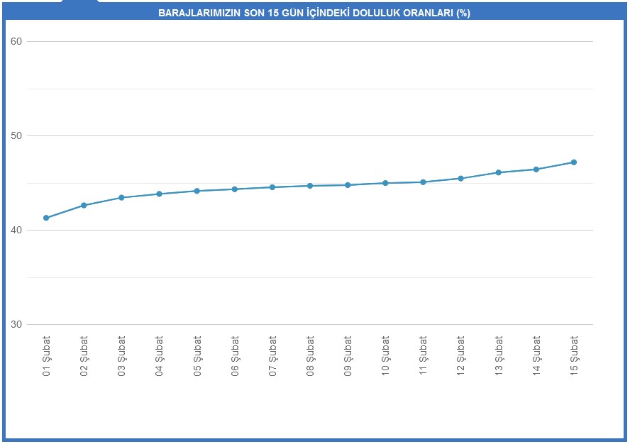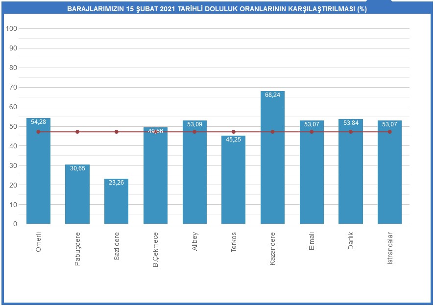 15 Şubat itibarıyla İstanbul'daki barajların doluluk oranları şu şekilde: