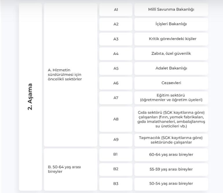 Son dakika... Kim ne zaman aşı olacak? Yeni tip koronavirüsle mücadele kapsamında yurt genelinde çalışmalar titizlikle yürütülüyor. Türkiye'ye Çin'den getirilen CoronaVac aşılarının sağlık çalışanlarına uygulanmasına başlandı. Söz konusu inaktif aşılar, 28 gün ara ile iki doz olarak yapılacak. Peki, kim ne zaman aşı olacak? Korona aşısı tarihleri açıklandı mı? MHRS ile Covid-19 aşı randevusu nasıl alınır? İşte son gelişmeler...