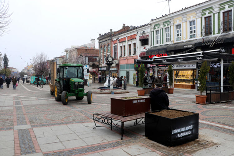 Edirne Belediyesi ekipleri, kentin en işlek yerlerinden Saraçlar Caddesi ile diğer bölgelerdeki bankları kaldırdı.Sosyal mesafenin korunmasını engellediği gerekçesiyle geçici olarak kaldırılan bankların yerlerine ekipler, çiçeklik koydu.