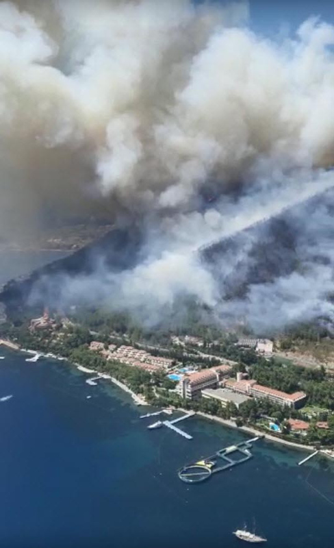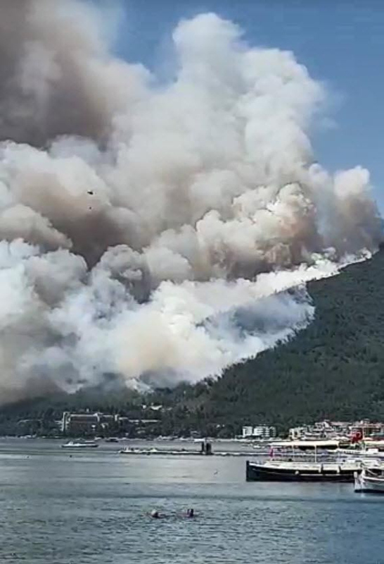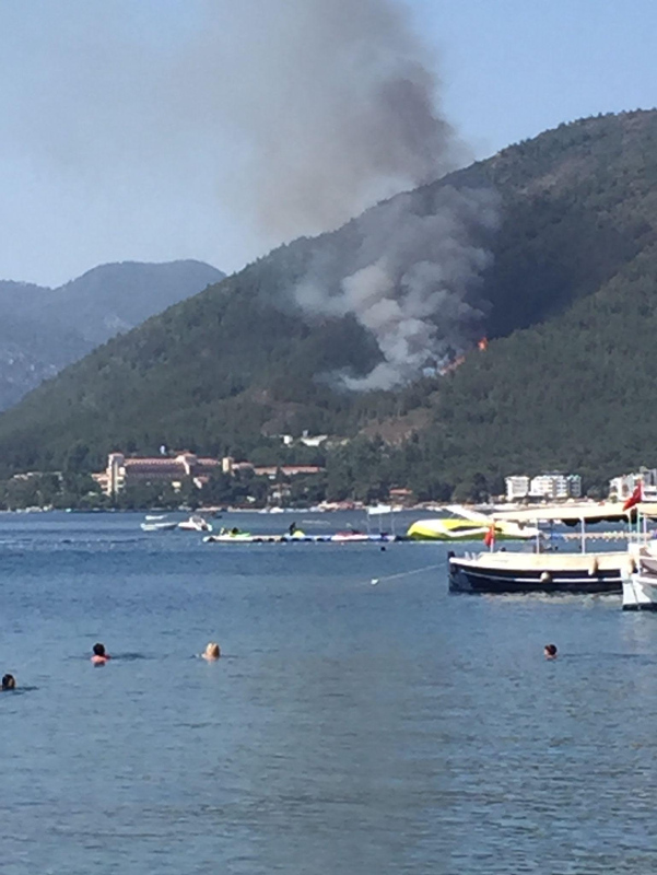 Muğla'nın en önemli turizm bölgelerinden biri olan Marmaris'te ormanlık alanda başlayan yangın, saniyeler içerisinde büyüdü.