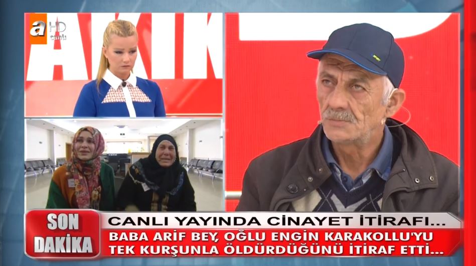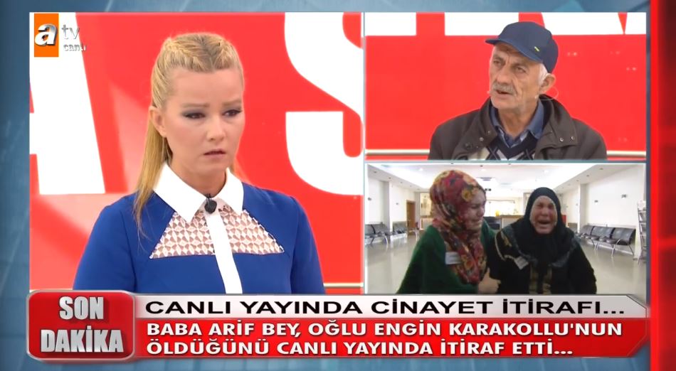 Müge Anlı ile Tatlı Sert programının 9 Nisan tarihindeki canlı yayınında kan donduran cinayet itirafı geldi. Müge Anlı canlı yayınında Akif Karakollu, psikolojik sıkıntılar yaşadığı ve anne babasını defalarca darp ettiği iddia edilen Engin Karakollu'yu öldürdüğünü itiraf etti.