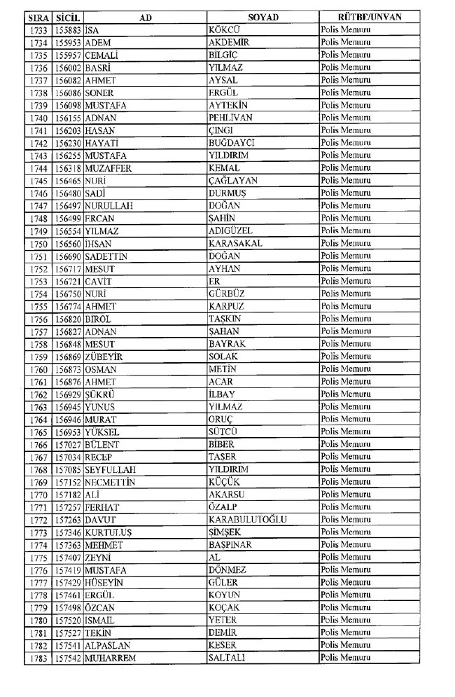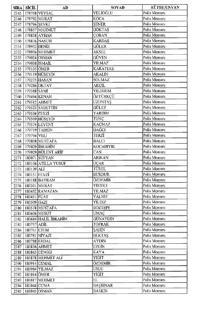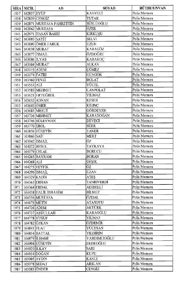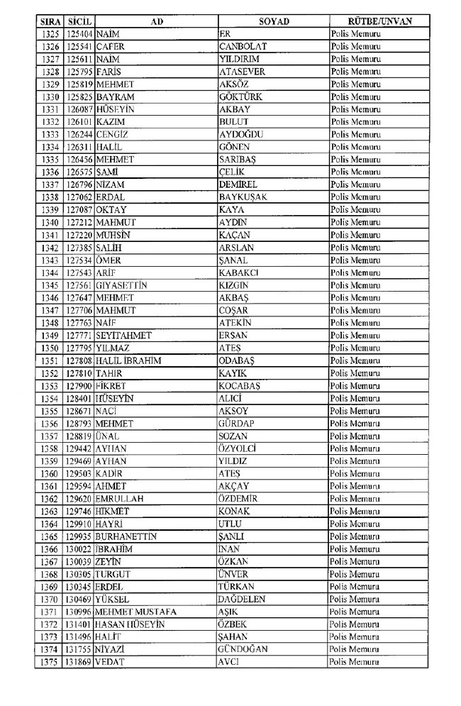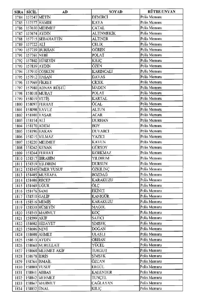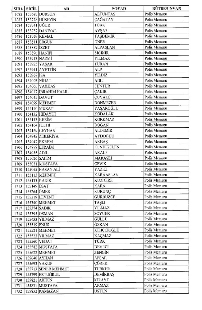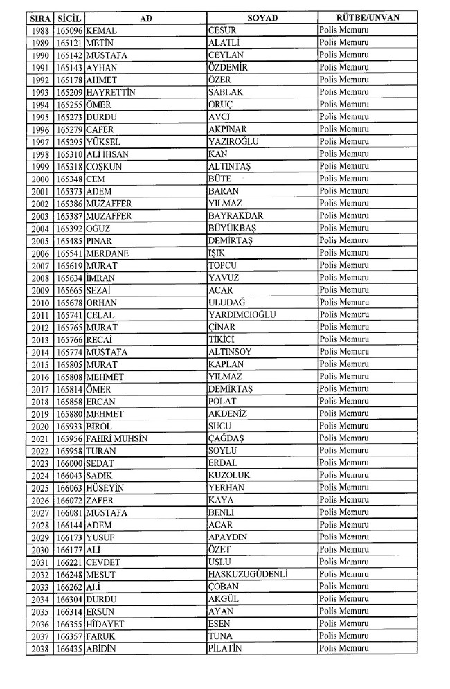 Son KHK'da Emniyet'ten 8 bin 998 ihraç! 701 sayılı KHK ile ihraç edilen polis memurlarının listesi... İşte son KHK ile ihraç edilen polisler...