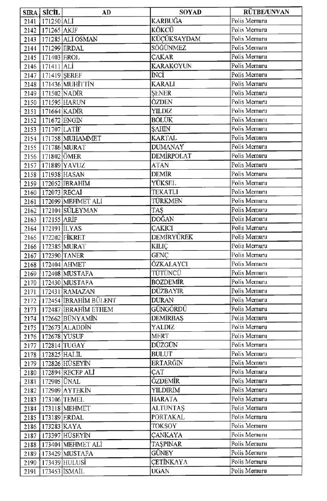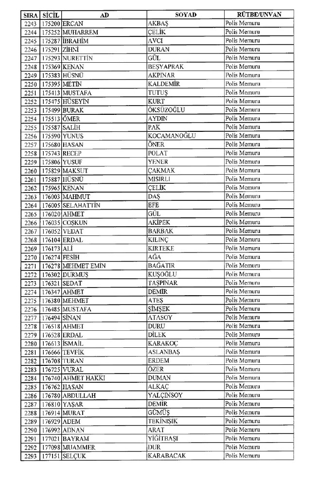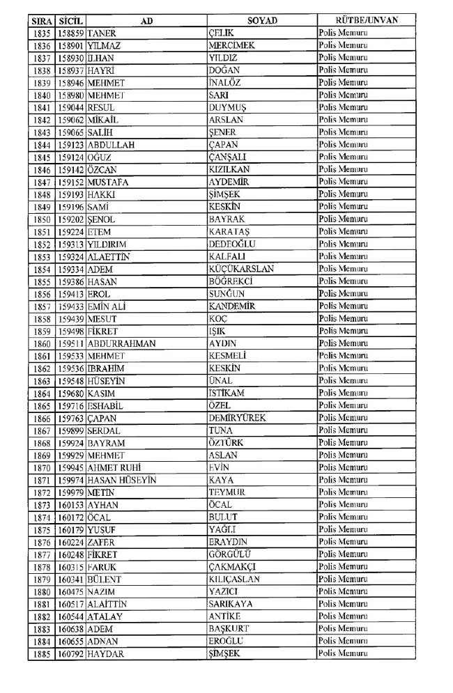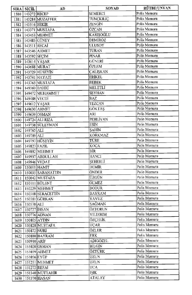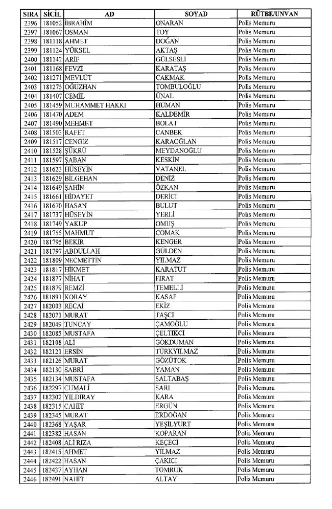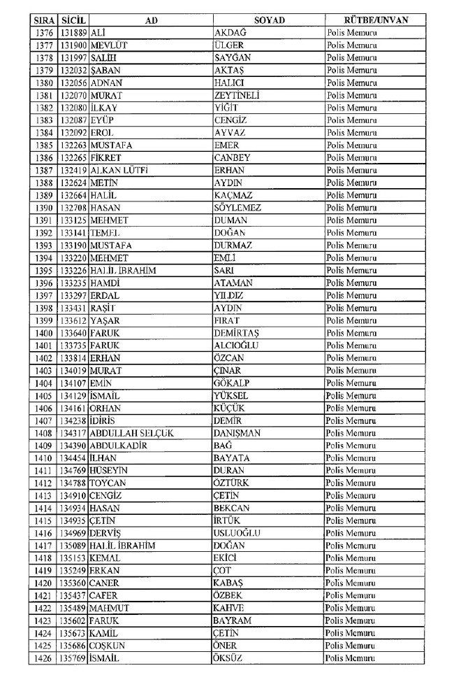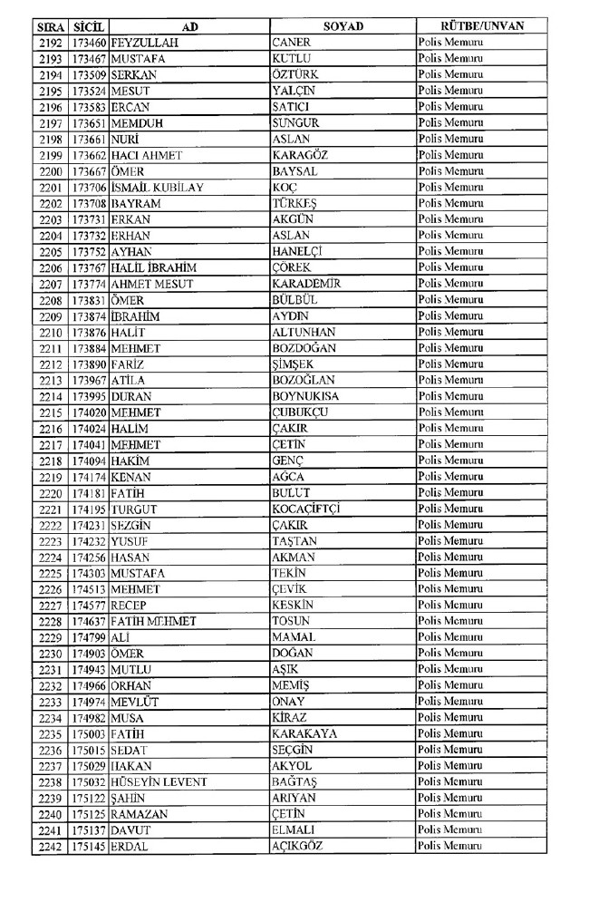Son KHK'da Emniyet'ten 8 bin 998 ihraç! 701 sayılı KHK ile ihraç edilen polis memurlarının listesi... İşte son KHK ile ihraç edilen polisler...