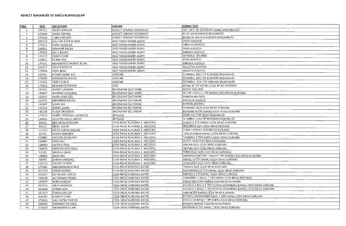 - Adalet Bakanlığından aralarında hakim adayı, infaz ve koruma memurlarının da bulunduğu 1052 kişi ihraç edildi.