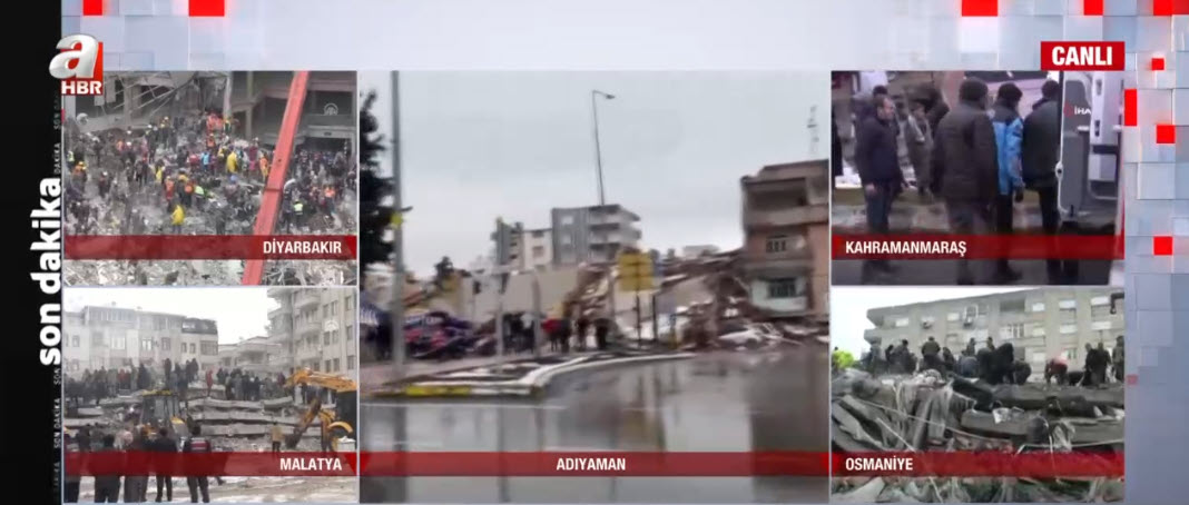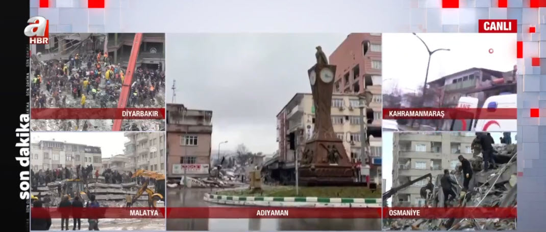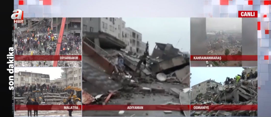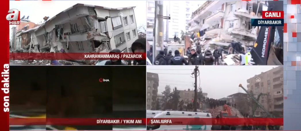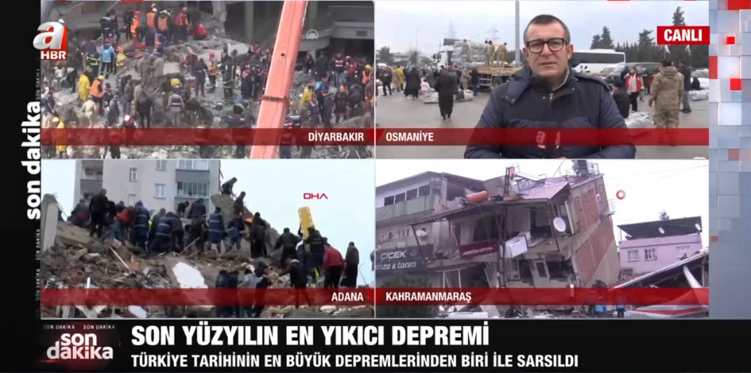Son dakika deprem haberi... Kahramanmaraş'ın Pazarcık ilçesinde meydana gelen 7,7'lik deprem tüm Türkiye'yi sarstı. A Haber ekipleri depremin hemen ardından haber nöbetine başladı. Adıyaman, Diyarbakır, Adana, Osmaniye, Gaziantep, Şanlıurfa, Malatya ve Hatay... A Haber muhabirleri son gelişmeleri canlı yayında tek tek aktardı.