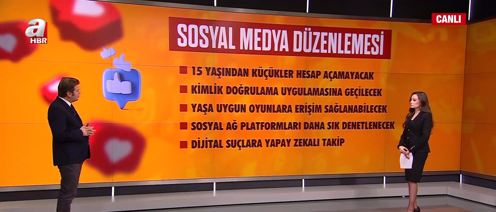 Türkiye'de sosyal medya kullanımına yönelik, özellikle çocukları siber zorbalık ve suç örgütlerinden korumayı amaçlayan yeni yasal düzenlemenin detayları netleşti. 15 yaş altı çocukların sosyal medya hesabı açmasının engellemesi, kimlik doğrulama zorunluluğu ve yapay zeka ile dijital suç takibi gibi adımlar yolda. A Haber İstanbul İstihbarat Şefi Ramazan Almaçayır, canlı yayında milyonları ilgilendiren bu tarihi düzenlemenin perde arkasını ve getireceği yenilikleri tek tek anlattı.