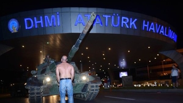 Türkiye'nin dört bir yanında askeri darbe girişimine karşı vatandaşlar sokaklara dökülmuş özellikle Atatürk Havalimanı'nın önünde yer alan bir tanka öfkesini yansıtan bir vatandaşın fotoğrafı dikkat çekmişti.