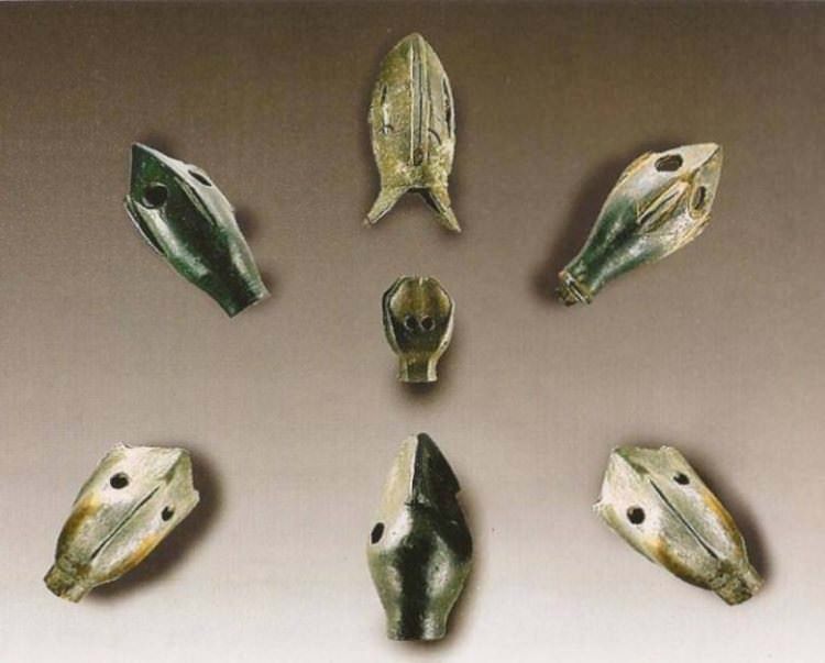 Temren adı verilen ok uçları çeşitli şekillerde oluyordu görselde Hunlara ait ok çeşitli ok uçlarını görmekteyiz bu temrenler günümüzde Ordos müzesinde sergilenmektedir.