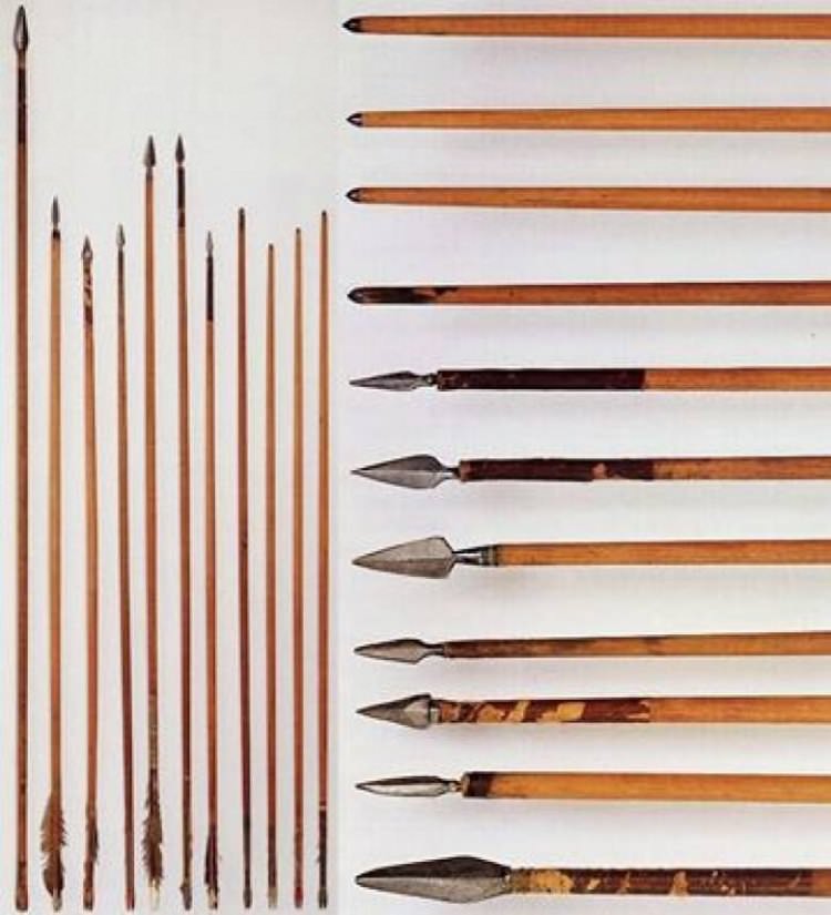 Tarihin en eski silahlarından olan ok, Türklerin atlı okçu birliklerini kurmalarıyla diğer devletlere üstünlük sağlamasında en önemli etkenlerden biridir. Görselde Osmanlı dönemi okları gösterilmiştir.Bu Osmanlı okları Karlsruhe Müzesi'nde(Almanya) sergilenmektedir.