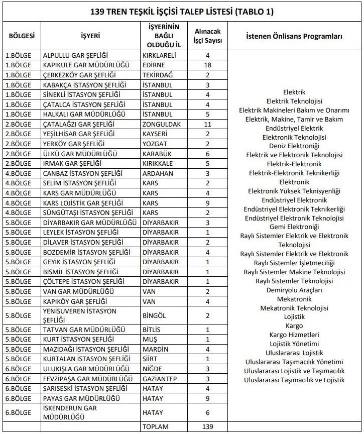* TCDD İşletmesi Genel Müdürlüğünün işyerleri tehlikeli ve çok tehlikeli işyeri kapsamında olması ve işin niteliği gereği ilan edilen işgücü talebine sadece erkek adaylar başvuru yapabilecek.