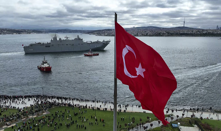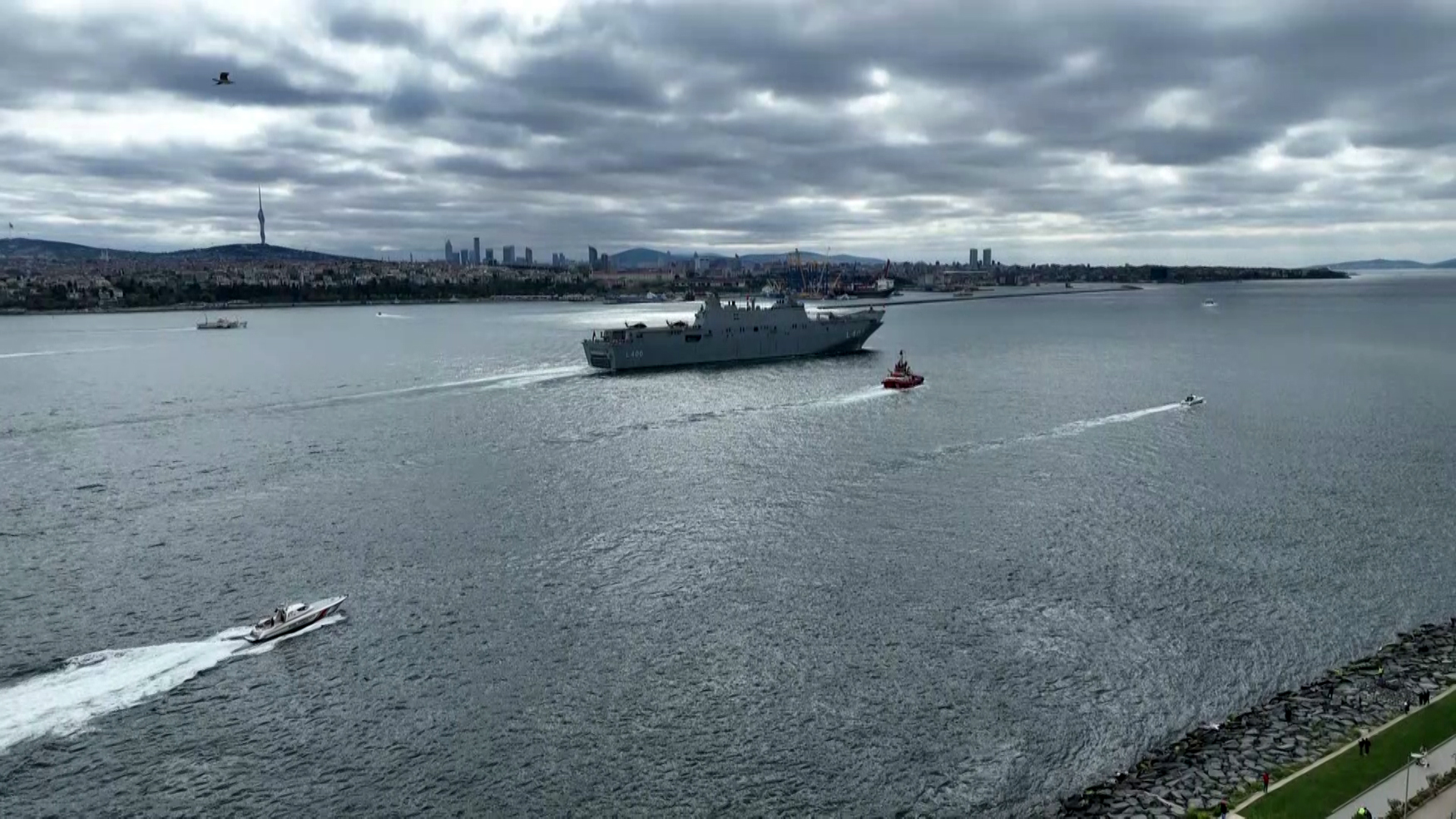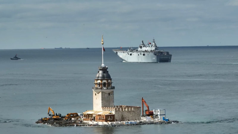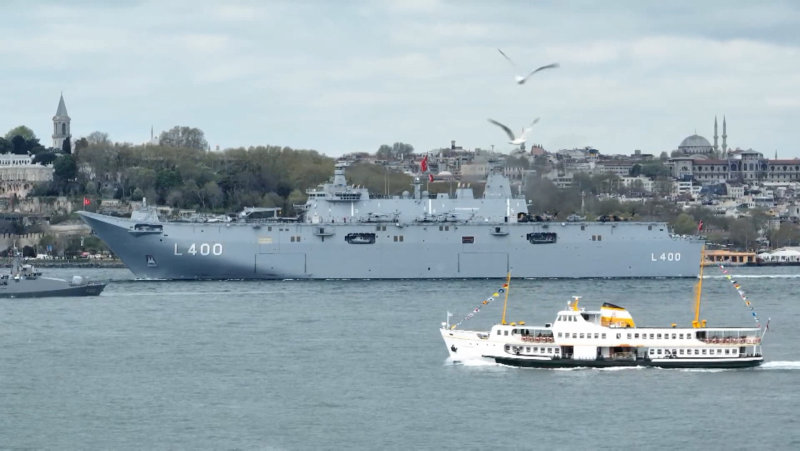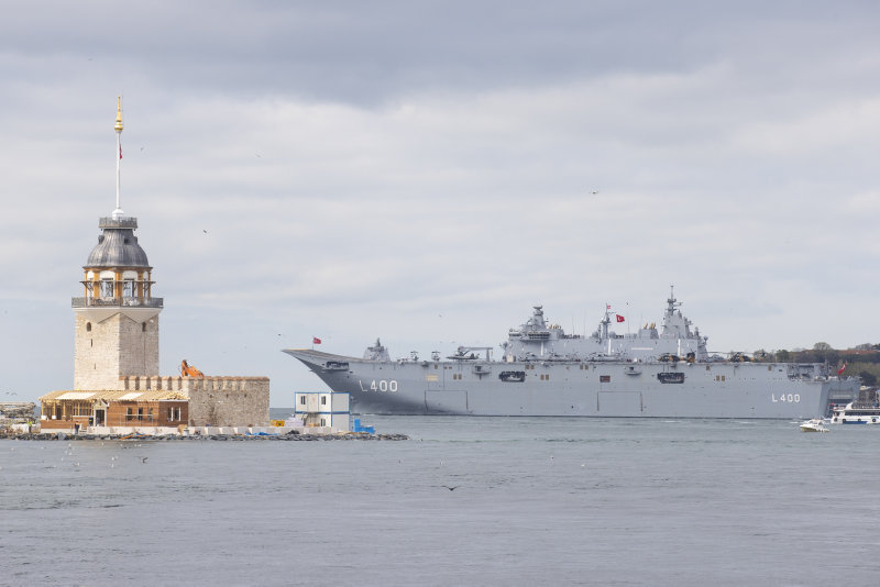 Milli Savunma Bakanı Hulusi Akar'ın "avara" komutunun ardından Türk Silahlı Kuvvetlerinin en büyük savaş gemisi yerli ve milli üretim TCG Anadolu, İstanbul Boğazı geçişi için Sarayburnu Limanı'ndan ayrıldı.