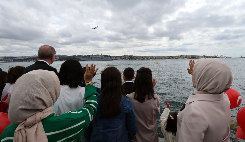 TCG Anadolu demir aldı! Başkan Erdoğan'ı selamladı! Boğaz'da tarihi anlar