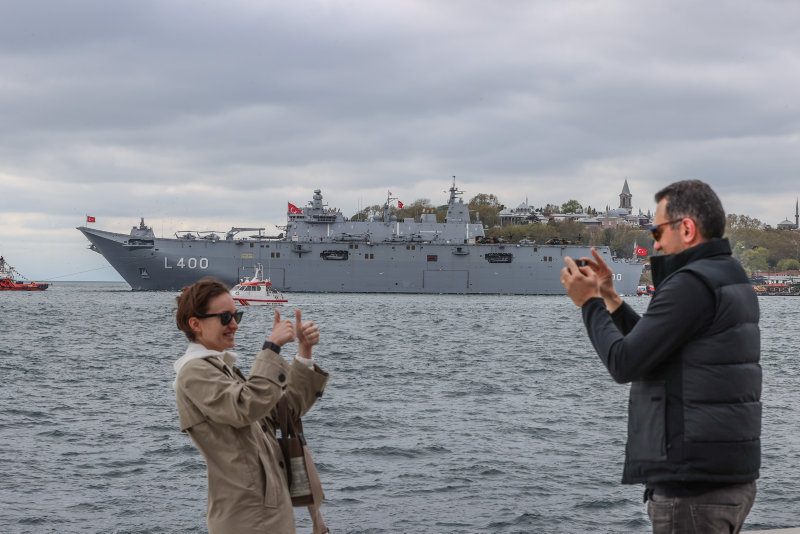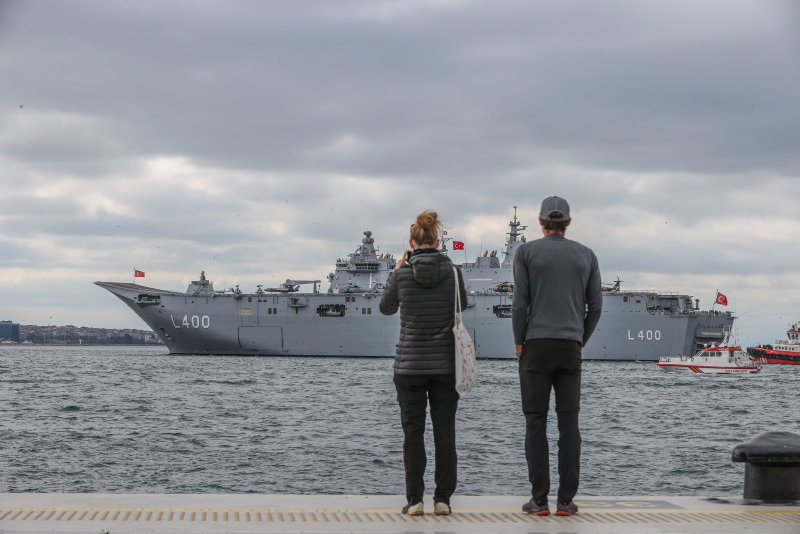 Dünyanın ilk silahlı insansız hava aracı (SİHA) gemisi ve Türkiye'nin en büyük askeri gemisi TCG Anadolu, Sarayburnu Limanı'nda Pazartesi günü vatandaşların ziyaretine açılmıştı.