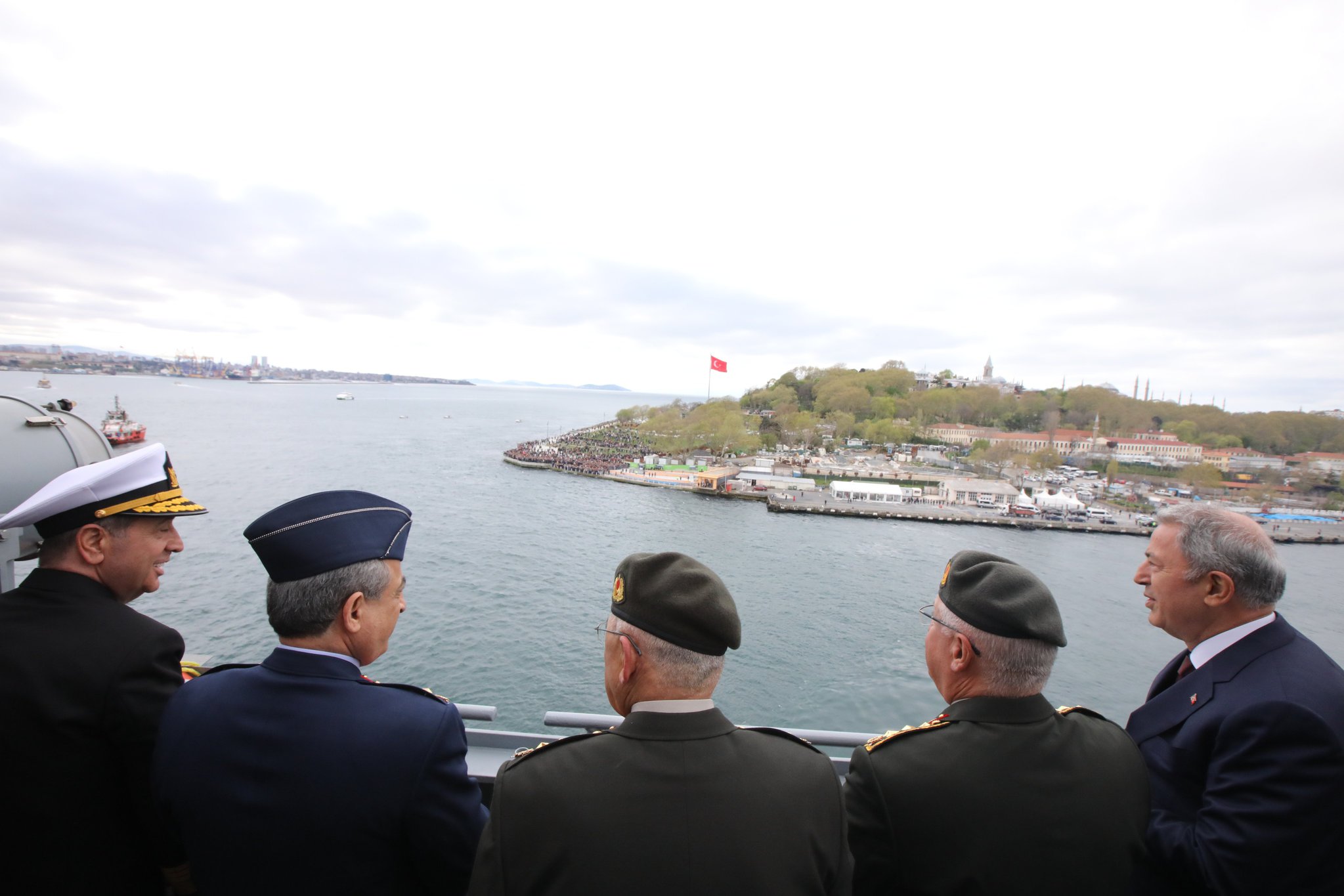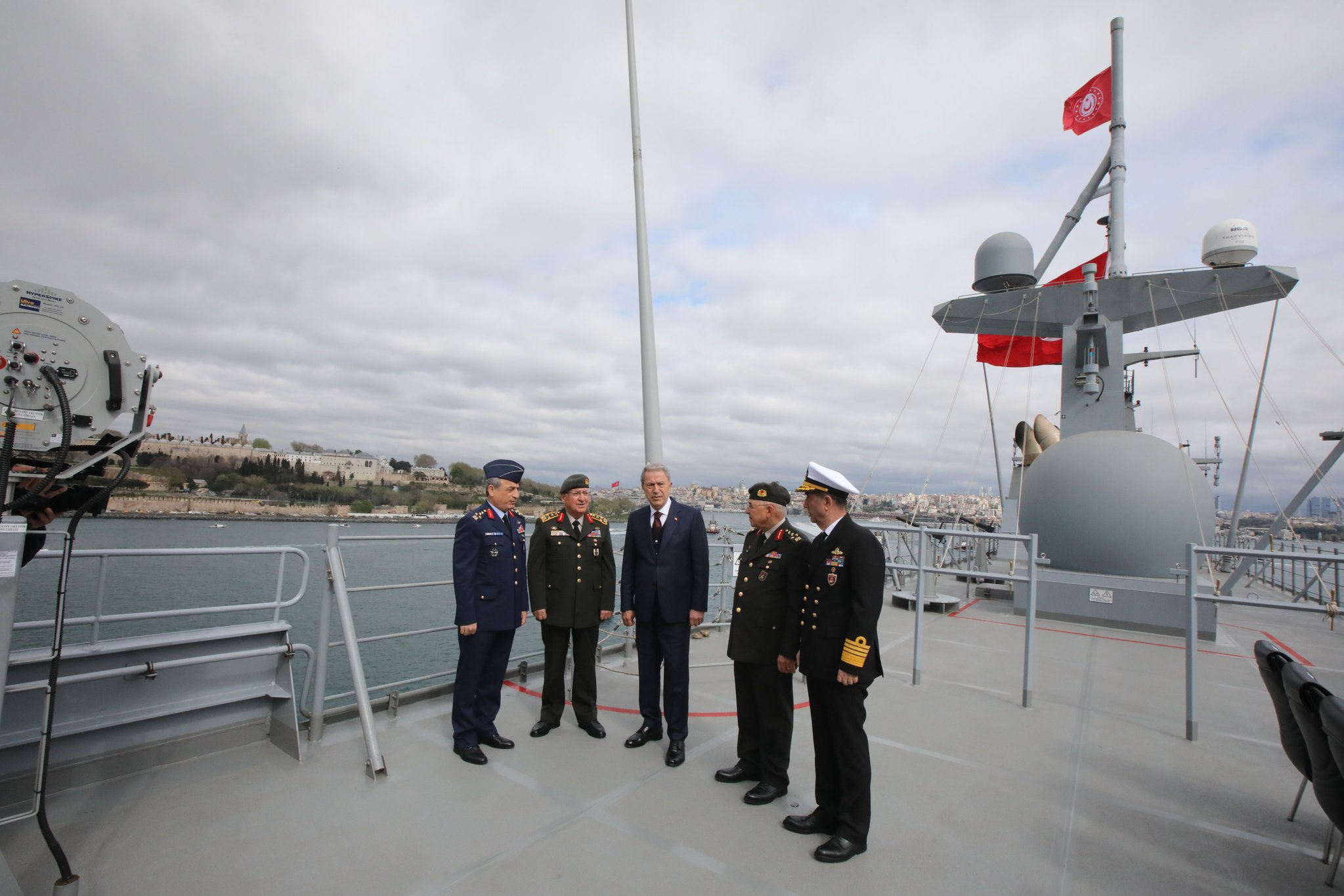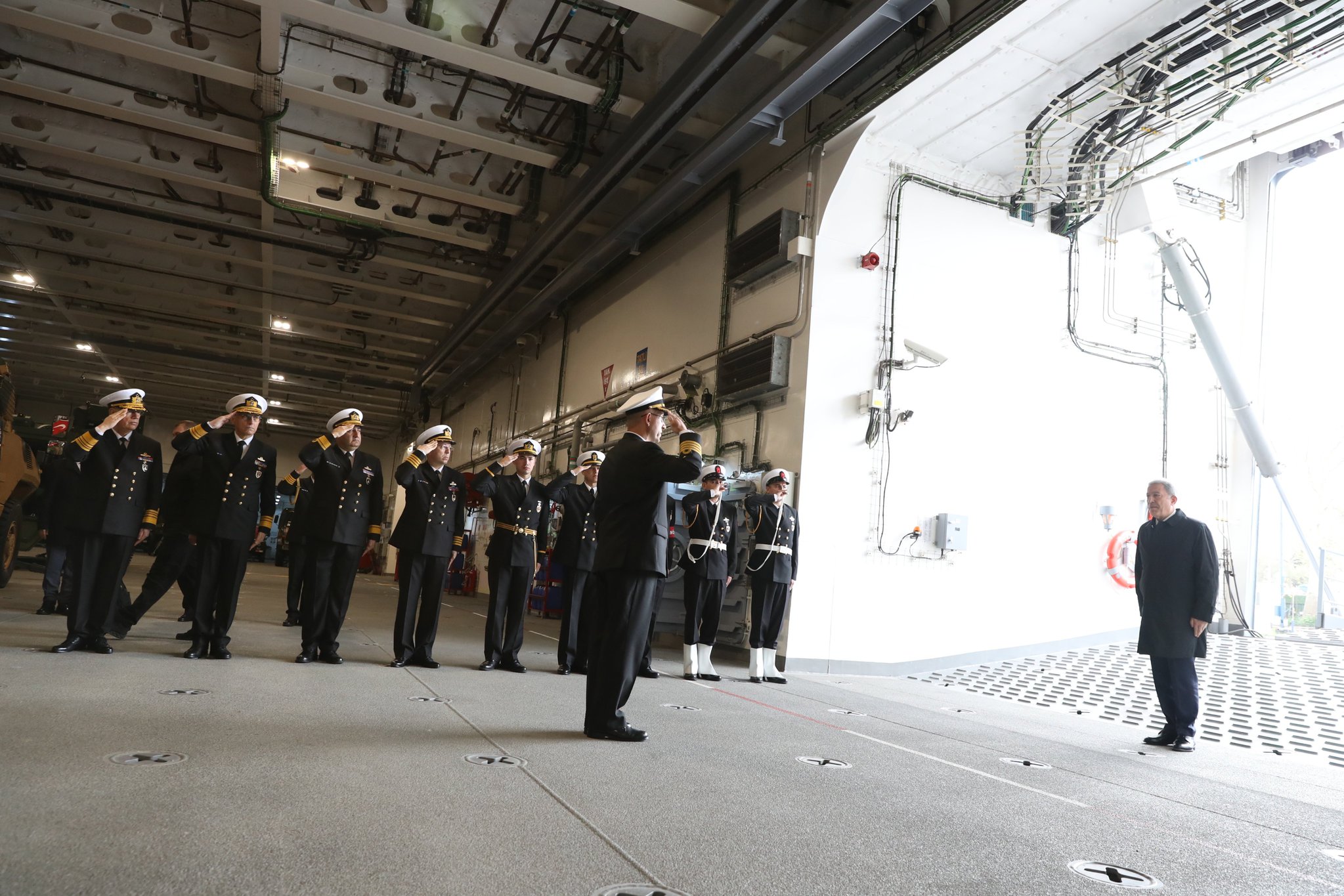 Bakan Akar, Genelkurmay Başkanı Orgeneral Yaşar Güler, Kara Kuvvetleri Komutanı Orgeneral Musa Avsever, Deniz Kuvvetleri Komutanı Oramiral Ercüment Tatlıoğlu ve Hava Kuvvetleri Komutanı Orgeneral Atilla Gülan ile TCG Anadolu'ya geldi.