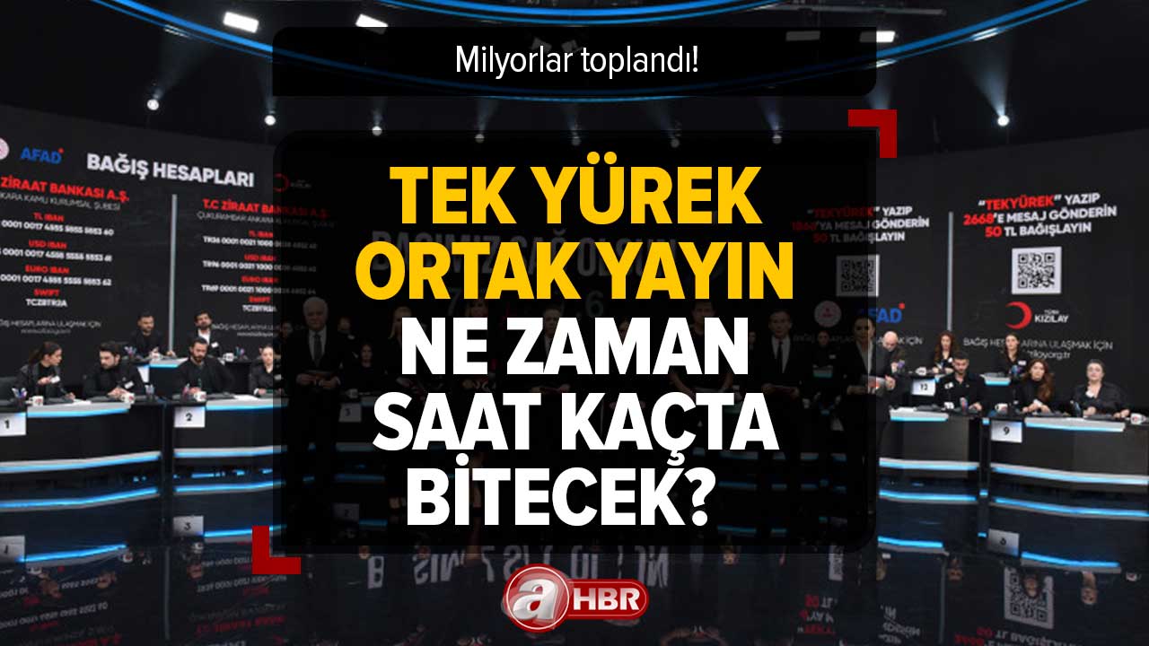 Türkiye 9 saatlik aralarla iki büyük depremle sarsıldı. Yüzyılın felaketi olarak anılan depremin ardından yaraların hızla sarılabilmesi için televizyonlar ortak yayın kampanyası gerçekleştirdi. 15 Şubat Çarşamba günü saat 20.00'de başlayan canlı yayının saat kaçta biteceği merak konusu oldu. Peki Tek Yürek Ortak Yayın saat kaçta bitecek?