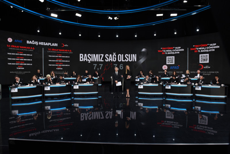 Merkez üssü Kahramanmaraş'ın Pazarcık ve Elbistan ilçeleri olan 7,7 ve 7,6 büyüklüğündeki depremlerin ardından televizyon kanalları yardım için ortak yayında bir araya geldi.