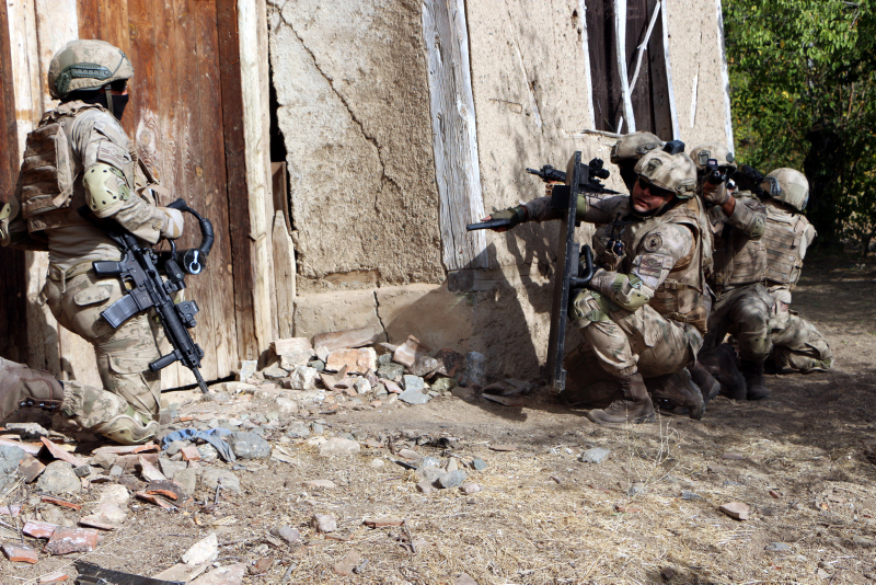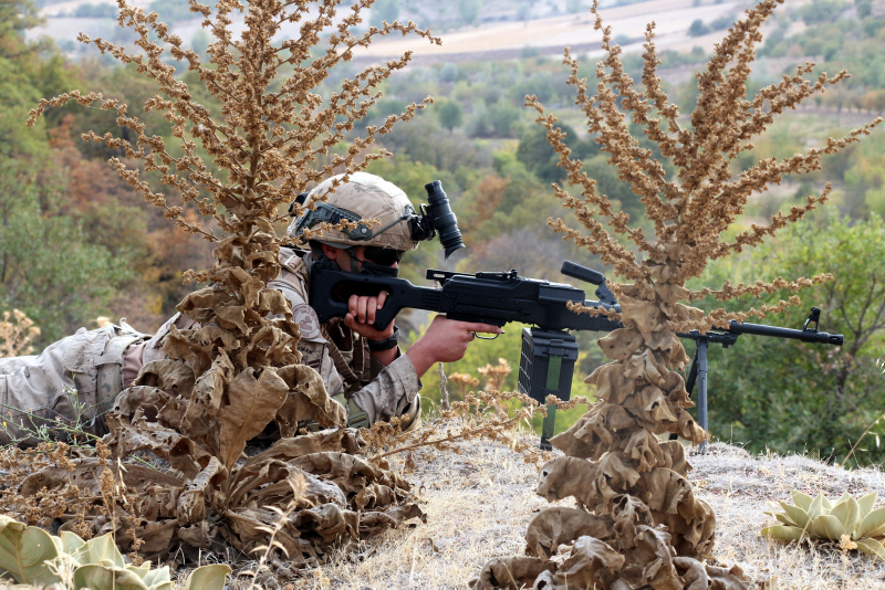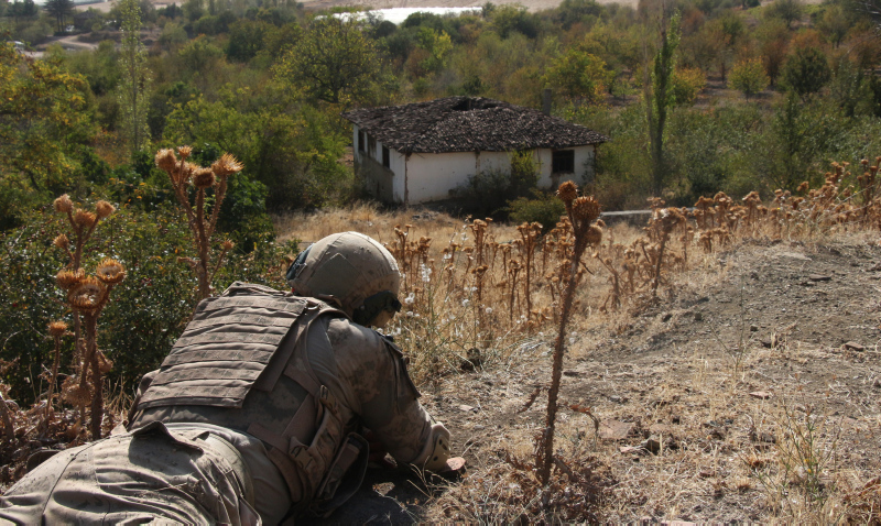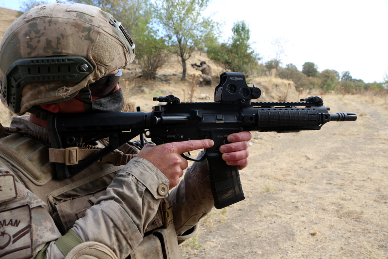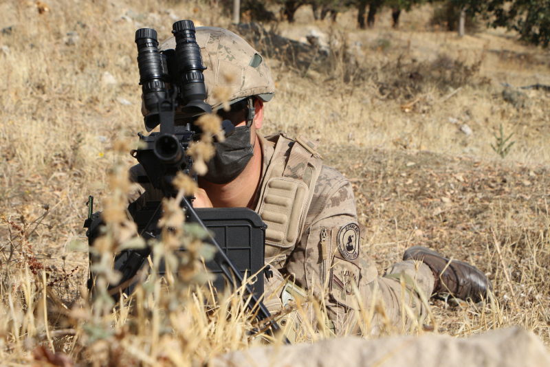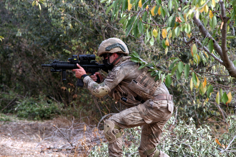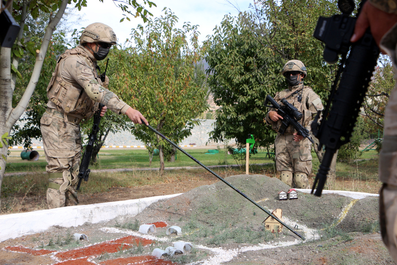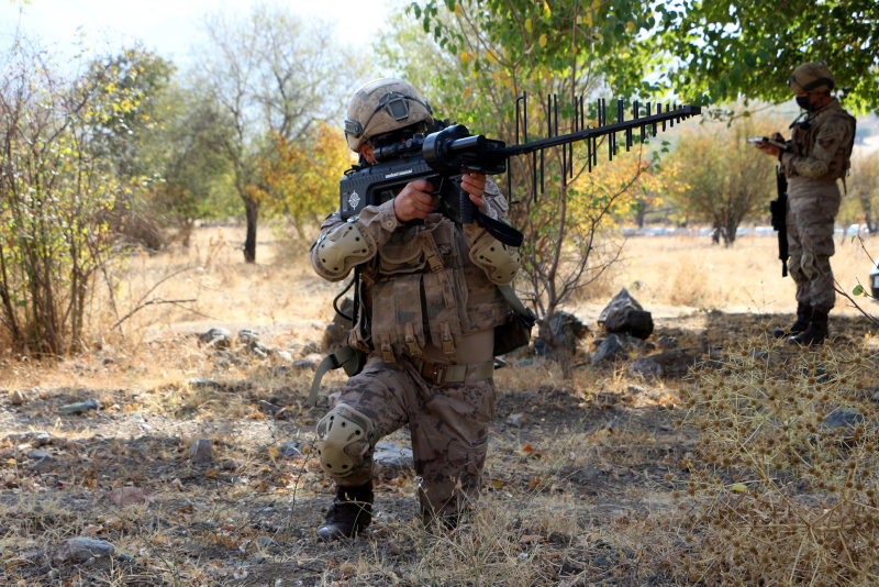 Aselsan'ın ürettiği dronsavarın da kullanıldığı tatbikatta, komandolar baskın yapacakları evin çevresine sızıp bölgeyi kontrol altına aldı. Komandoların operasyon bölgesine intikalinde, sinyal kesici zırhlı kirpi aracı ve arama tarama köpeği ile yolda el yapımı patlayıcı (EYP) araması yapıldı.