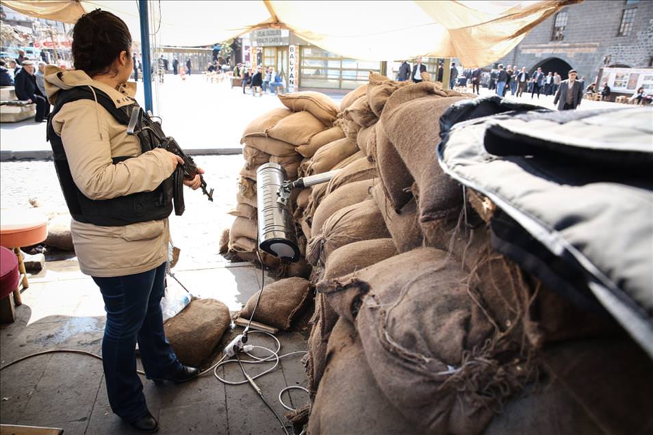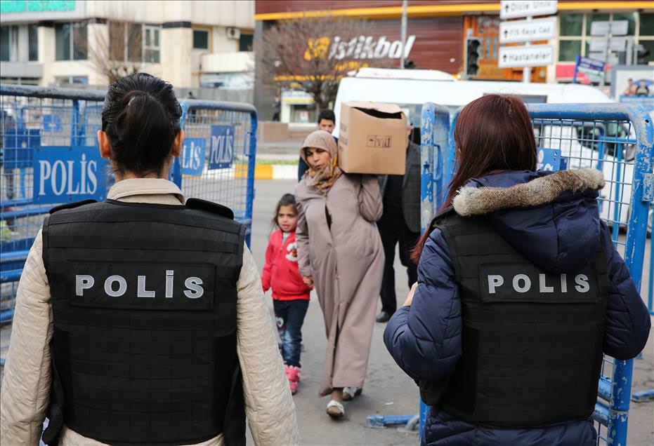 Terör örgütü PKK'ya yönelik operasyonların devam ettiği Sur'da, sivillerin tahliyesi sırasında operasyon bölgelerinde de görev alan kadın polisler, halkın huzuru ve güvenliği için mesai harcıyor.