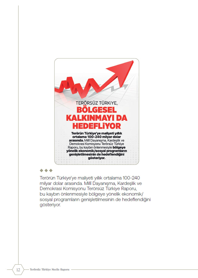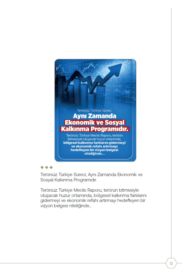 Geniş katılımlı istişare sonucu hazırlanan rapor; terörün sona ermesiyle birlikte ekonomik ve sosyal kalkınma hamlelerinin hızlandırılmasını, bölgesel refah farklarının azaltılmasını ve kamu düzeni ile özgürlük dengesinin güçlendirilmesini hedefliyor.