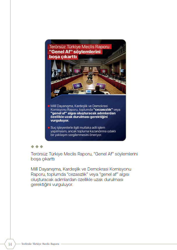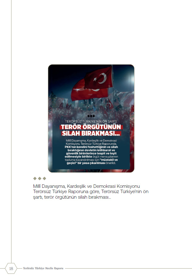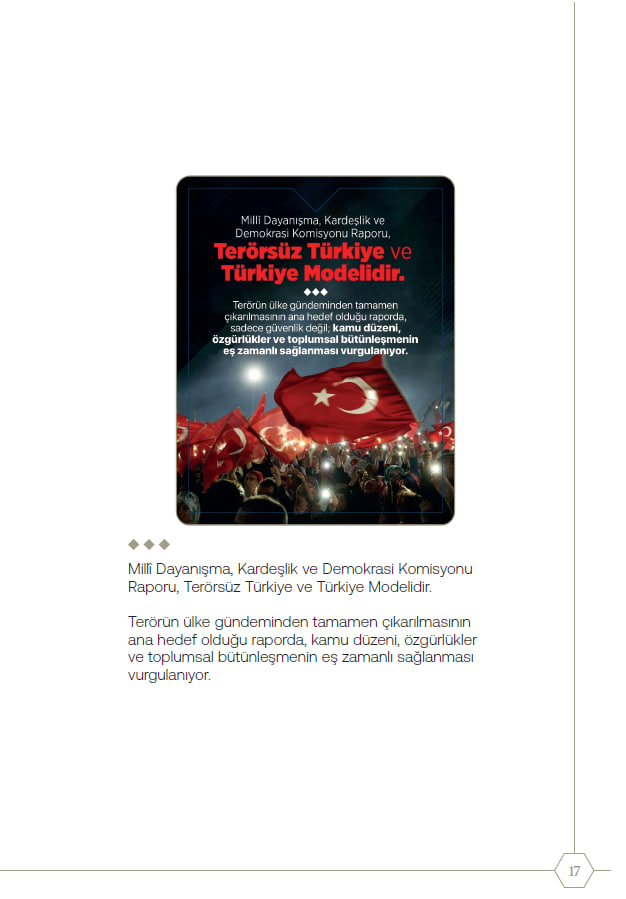 Millî Dayanışma, Kardeşlik ve Demokrasi Komisyonu tarafından açıklanan Terörsüz Türkiye Raporu'na ilişkin öne çıkan başlıklar...