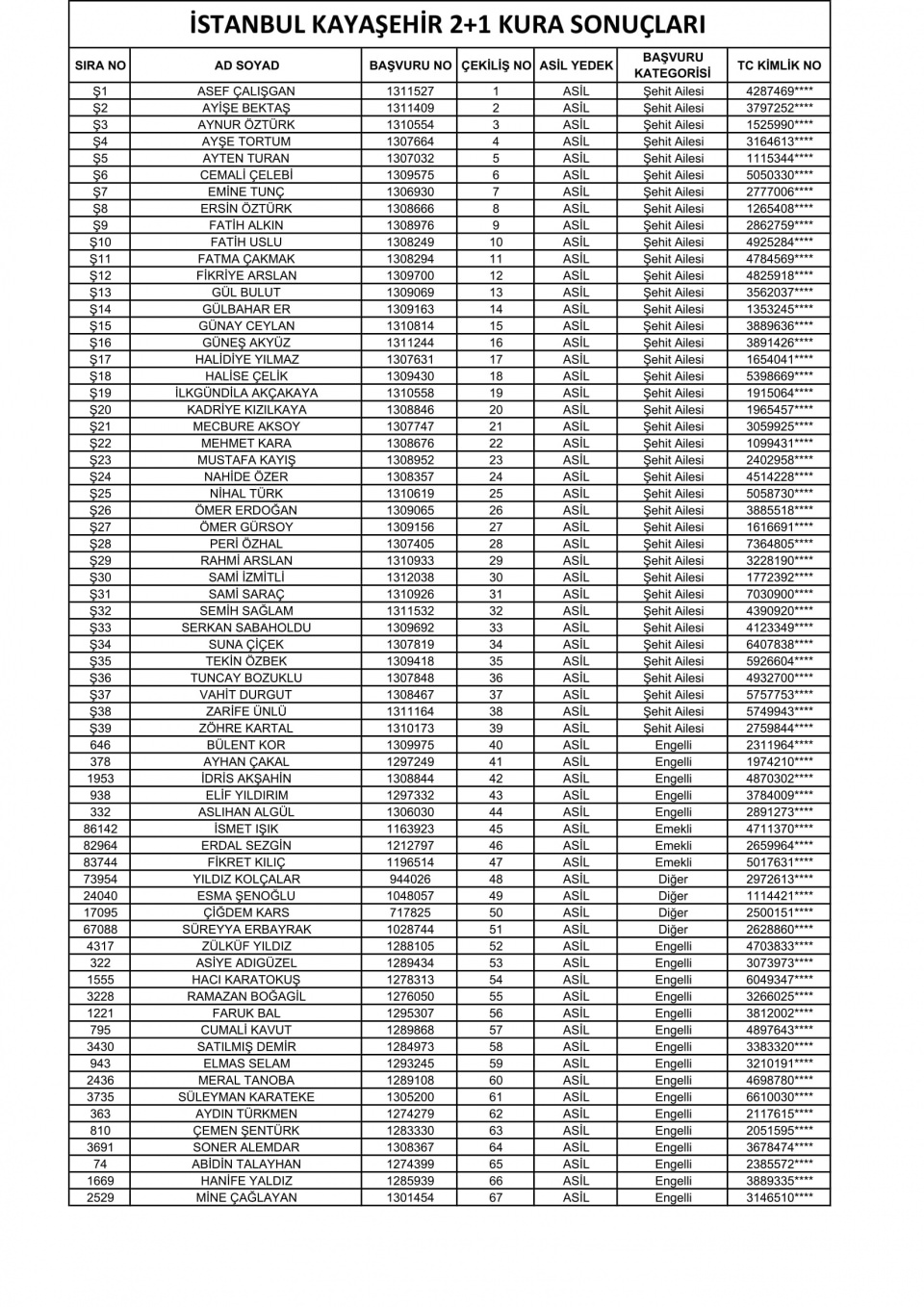 2+1 TOKİ Başakşehir kura sonuçları açıklandı! İşte, TOKİ kura çekilişi Başakşehir Kayabaşı sıralı tam listesi!