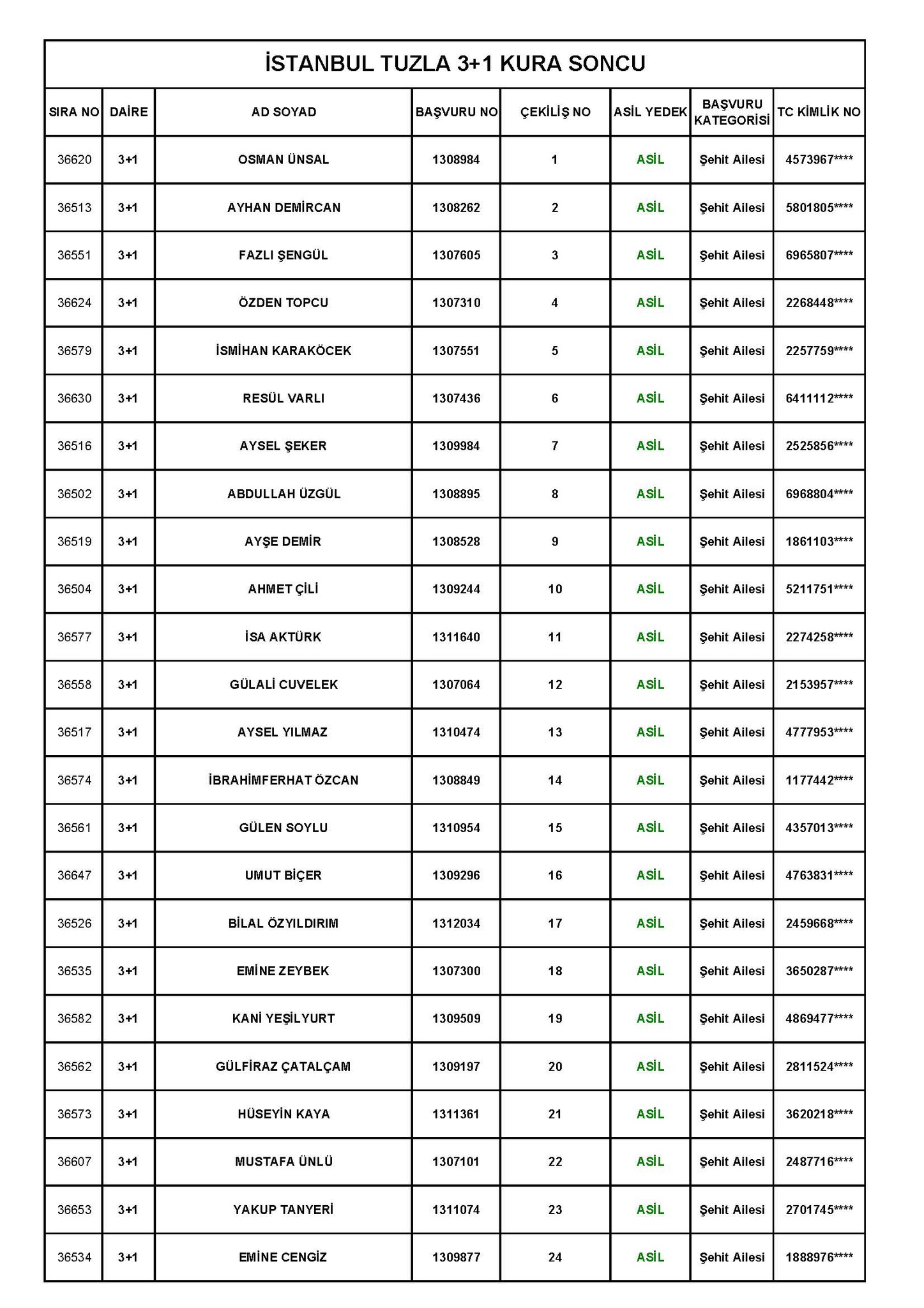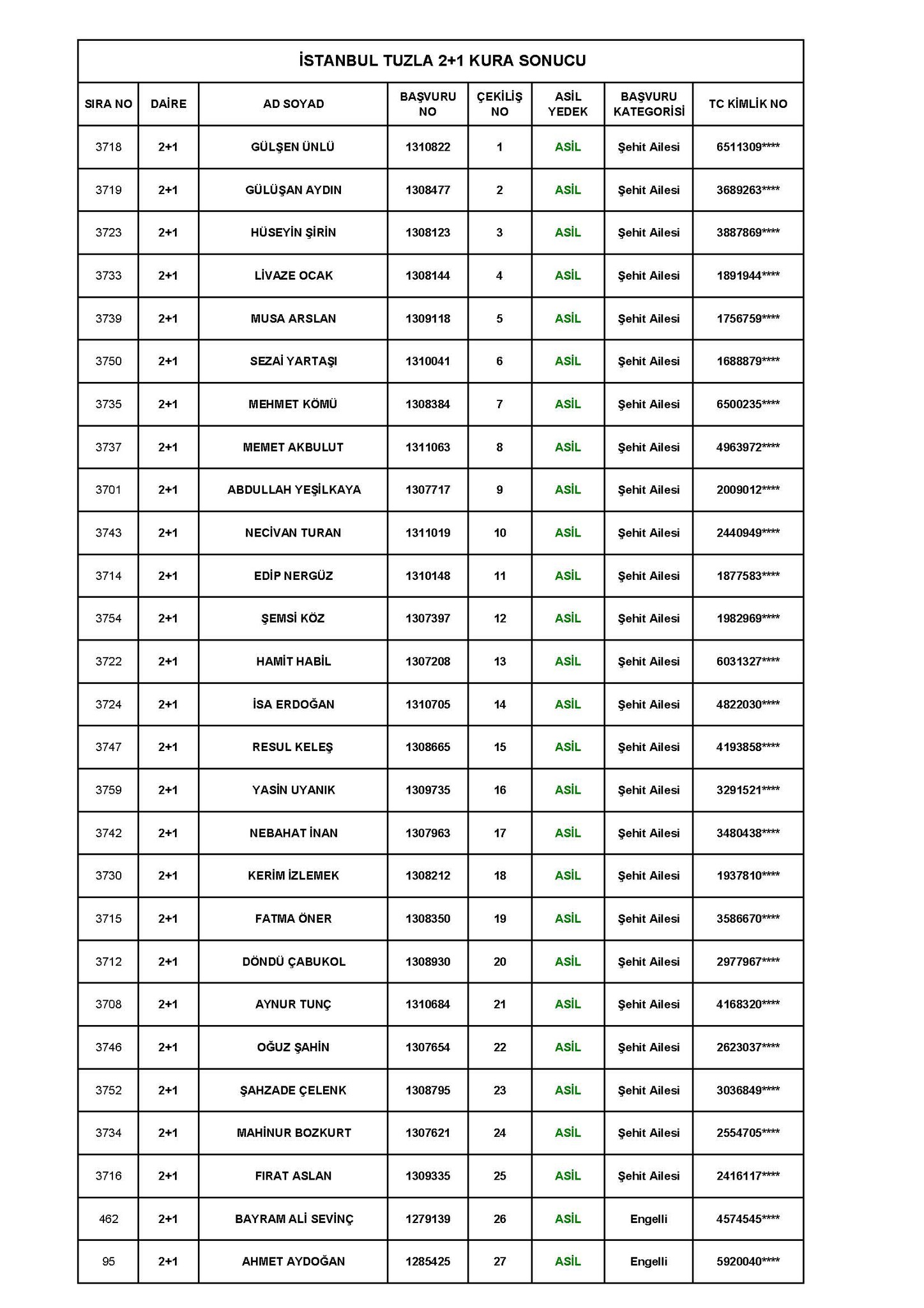 TOKİ Tuzla Aydınlı 1 Temmuz kura çekiliş sonuçları! toki.gov.tr 3+1 ve 2+1 TOKİ kura sonuçları sıralı tam liste!