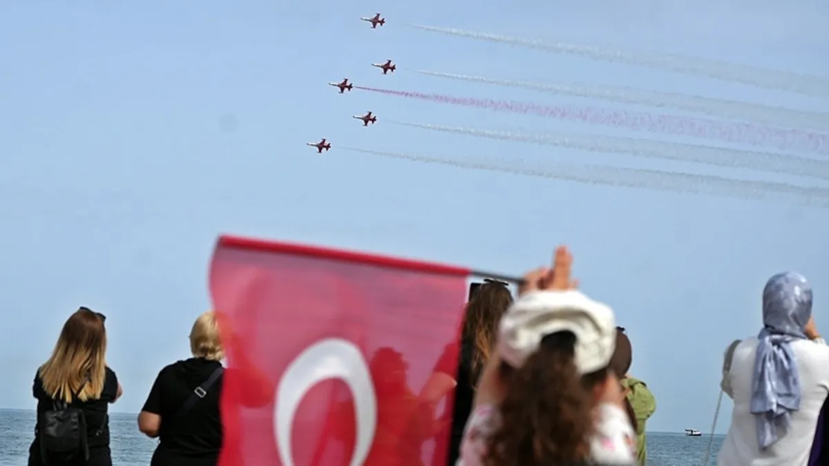 23 Nisan Ulusal Egemenlik ve Çocuk Bayramı tüm yurtta coşkuyla kutlanıyor. Türk Yıldızları ve SOLOTÜRK ekipleri de 23 Nisan için gösteri uçuşu düzenledi. Antalya ve Çanakkale'deki gösteri uçuşları izleyenlerin nefesini kesti.