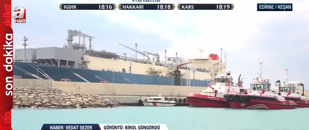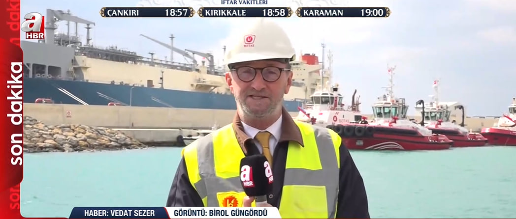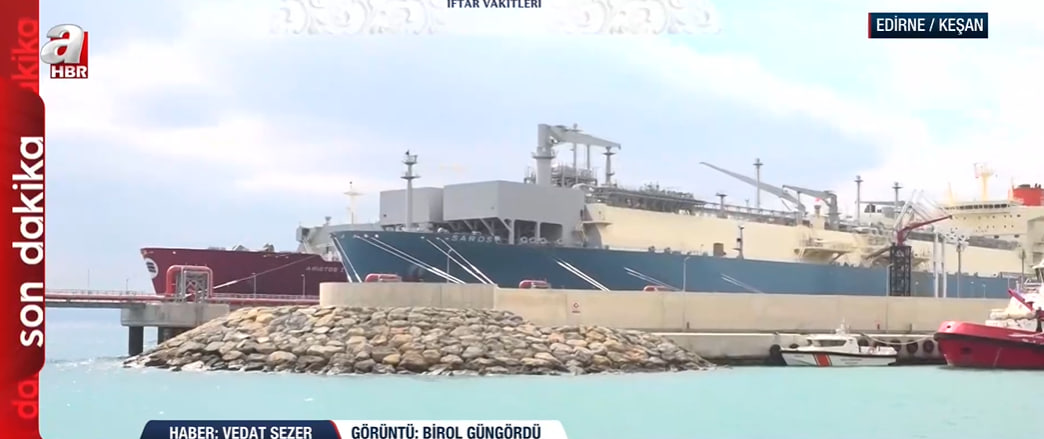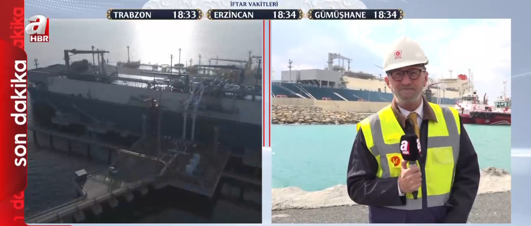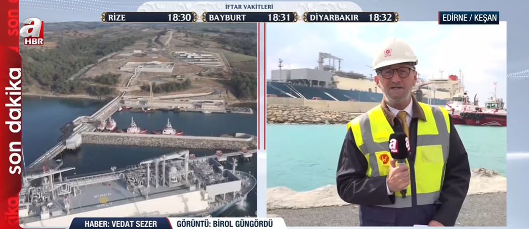 Dünyanın farklı noktalarından gelen sıvılaştırılmış doğalgazın (LNG) sisteme dahil edildiği terminaldeki süreci yerinde inceleyen A Haber muhabiri Vedat Sezer, "Şu anda arkamızda gemiden gemiye gaz transferi yapılıyor; dünyanın farklı kaynaklarından elde edilen LNG, Saros gemisine aktarılarak gaz haline getiriliyor" sözleriyle terminaldeki operasyonel detayları aktardı.
