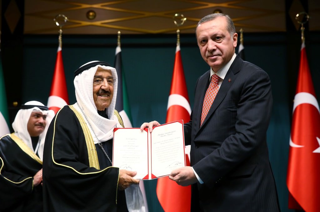 Kuveyt Emiri Şeyh Sabah Al Ahmed Al Jaber Al Sabah'a Bakanlar Kurulu Kararı ile tevcih edilen Devlet Nişanının yabancı devlet başkanlarına verilen Türkiye'nin en yüksek nişanı olduğunu söyleyen Cumhurbaşkanı Erdoğan, "Bu nişan iki ülke ilişkilerinin ve dostluk bağlarının güçlenmesine yönelik gösterilen çabaların en üst düzeyde taktir edilmesinin de bir sembolüdür.