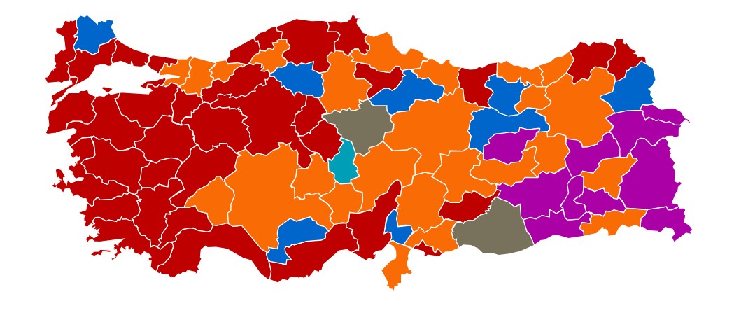 AK Parti, Erzurum, Gaziantep, Kahramanmaraş, Kayseri, Kocaeli, Konya, Malatya, Ordu, Sakarya, Samsun, Trabzon ve Hatay'da seçimi kazandı.