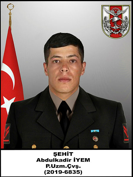 Irak'ın kuzeyindeki Pençe-Kilit Harekatı bölgesinde bulunan üs bölgesine sızmaya çalışan teröristlerle güvenlik güçleri arasında çıkan çatışmada şehit olan Piyade Uzman Çavuş Abdulkadir İyem'in cenazesi, Gaziantep'te toprağa verildi. Törene katılan şehidin dedesi Mehmet, gözyaşı döktü.