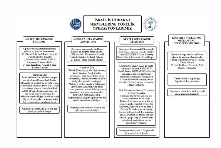 Son 3 yıldır MOSSAD'ın Türkiye'deki yasadışı faaliyetlerine yönelik önemli operasyonlara imza atan Milli İstihbarat Teşkilatı son olarak İsrail Dış İstihbarat Servisi Mossad'a yönelik 8 ilde İstanbul Emniyeti ile birlikte "Köstebek" operasyonu düzenledi.