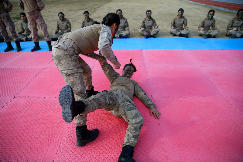 Eğitimlerini özel alanlar ve arazide gerçekleştiren komandolar, atış konusunda da en iyi olmaları için özenle yetiştirildi. Kurs boyunca roketatar, el bombası, keskin nişancı tüfeği, tabanca gibi ateşli silahları ustalıkla kullanan kadın astsubaylar, saniyeler içinde gözleri kapalı bir şekilde silahları tamamen söküp takabiliyor.