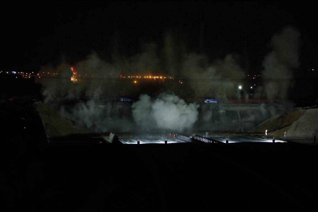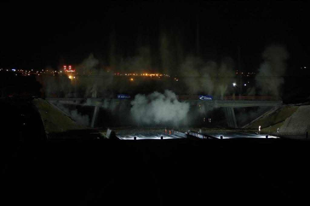 TEM Otoyolu'nun Gebze-Orhangazi-İzmir Otoyolu'na bağlantısını sağlayan K1 kavşağı bölgesinde yolun genişletilmesi nedeniyle Dilovası mevkisi ile Gebze arasındaki iki eski köprüye döşenen emülsiyon tipi patlayıcılar gece saat 00.00'da patlatıldı.