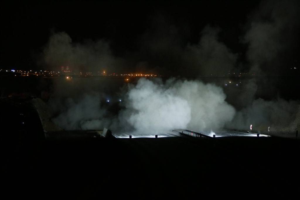 Emülsiyon tip patlayıcıların patlatılmasının ardından köprüler 2,5 saniye içerisinde yerle bir oldu, çevrede yoğun bir toz bulutu oluştu. Her bir köprü için 61,5 kilogram patlayıcı ve 25 gecikmeli kapsül kullanıldı.