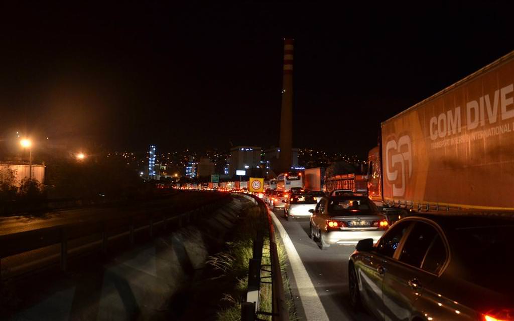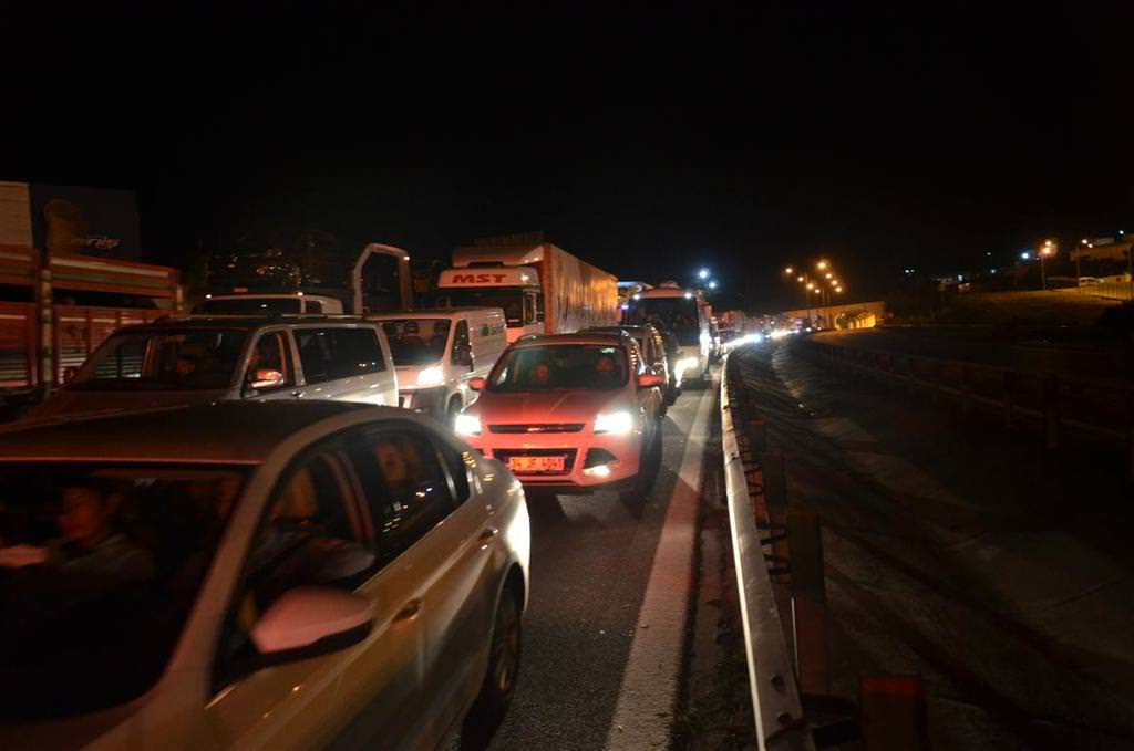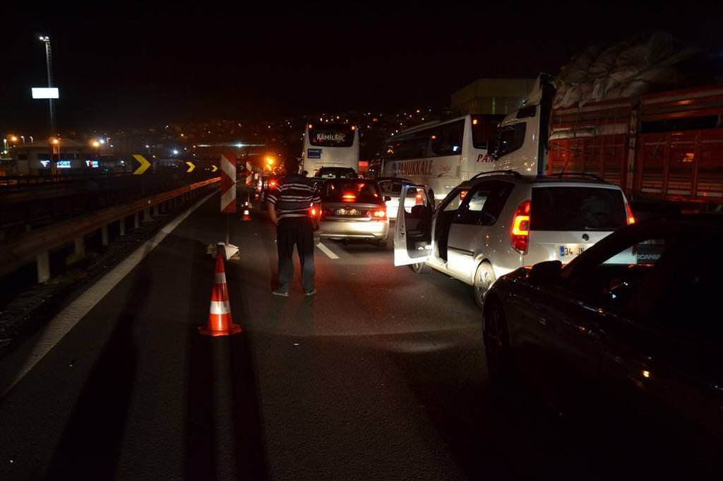 Öte yandan TEM Otoyolun'un trafiğe kapatılması nedeniyle İstanbul istikametinde araç kuyrukları oluştu.