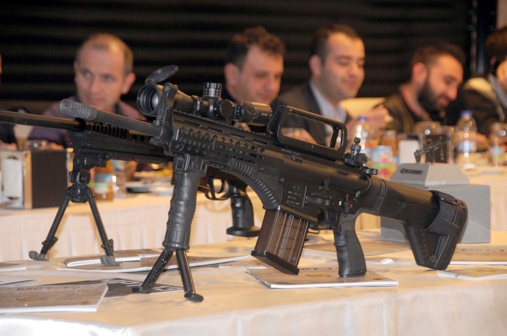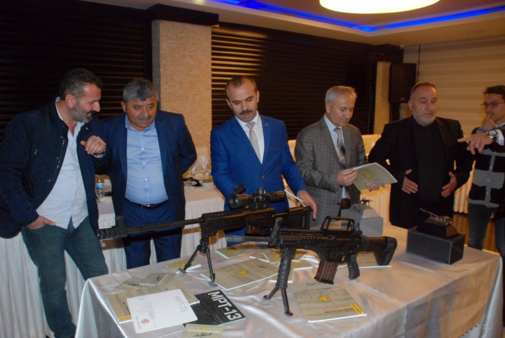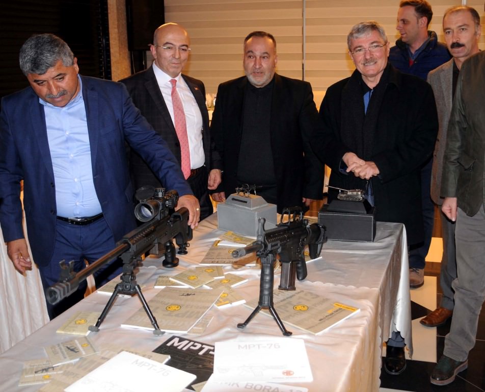 Bir otelde düzenlenen toplantıda milli piyade tüfeği MPT-76 ile keskin nişancı tüfeği BORA 12 isimli tüfeği programa katılan davetliler yakından inceleme imkanı buldu.