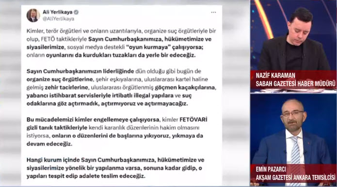 Sabah Gazetesi Haber Koordinatörü Abdurrahman Şimşek ve Sabah Gazetesi Haber Müdürü Nazif Karaman, çarpıcı detayları ilk kez A Haber'de anlattı. Akşam Gazetesi Ankara Temsilcisi Emin Pazarcı ve Sabah Gazetesi Yazarı Mahmut Övür konu ile ilgili değerlendirmelerde bulundu.