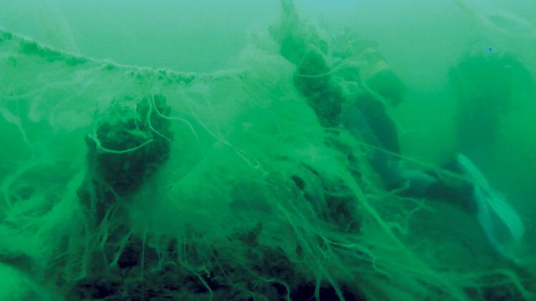 Pruvası (önü) körfeze doğru bakan geminin sancak (sağ) tarafına ulaştığımızda güvertedeki halatlardan ve tellerden sarkan deniz salyasının adeta istila ettiği görüldü. Avcı balıkları kendine çeken küçük karides sürülerini bulmanın hayal olduğunu anlarken geminin üstünde balık görme umudu da gerçekleşmedi. 8 yılda denizatlarının ve deniz iğnelerinin çevresinde yuvalandığı geminin üstünde ve etrafında hiçbir canlıya rastlayamamamın verdiği umutsuzlukla satha çıkarken, müsilajın ekosistemleri nasıl yok ettiğine bir kez daha tanık olundu.