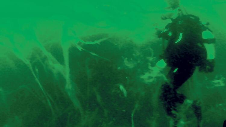 Dalış kılavuzu Zafer Türkmen ve güvenlik dalgıcı Yener Kuşçu'nun eşliğinde yapılan dalışın daha ilk metrelerinde korku filmi sahnesine sokan yığınlar ortaya çıktı. İlk 5 metreden itibaren müsilaj yığını saldırıya geçti. 20 metrelerde gemiye ilerleyişte gözler yapay resifin canlandırdığı ekosistemdeki balıkları aradı. Deniz salyasının görüşü 1 metreye kadar düşürdüğü derinliklerde, Şirinoğlu'nun bahsettiği hiçbir canlıyı görülmezken 3 dalgıç birbirini kaybetmemek için yoğun çaba sarf etti. Çözünmüş oksijenin azlığının tüm canlıları kaçırdığını anlamak zor olmadı çünkü bahsedilen hiçbir balığa rastlanmadı.