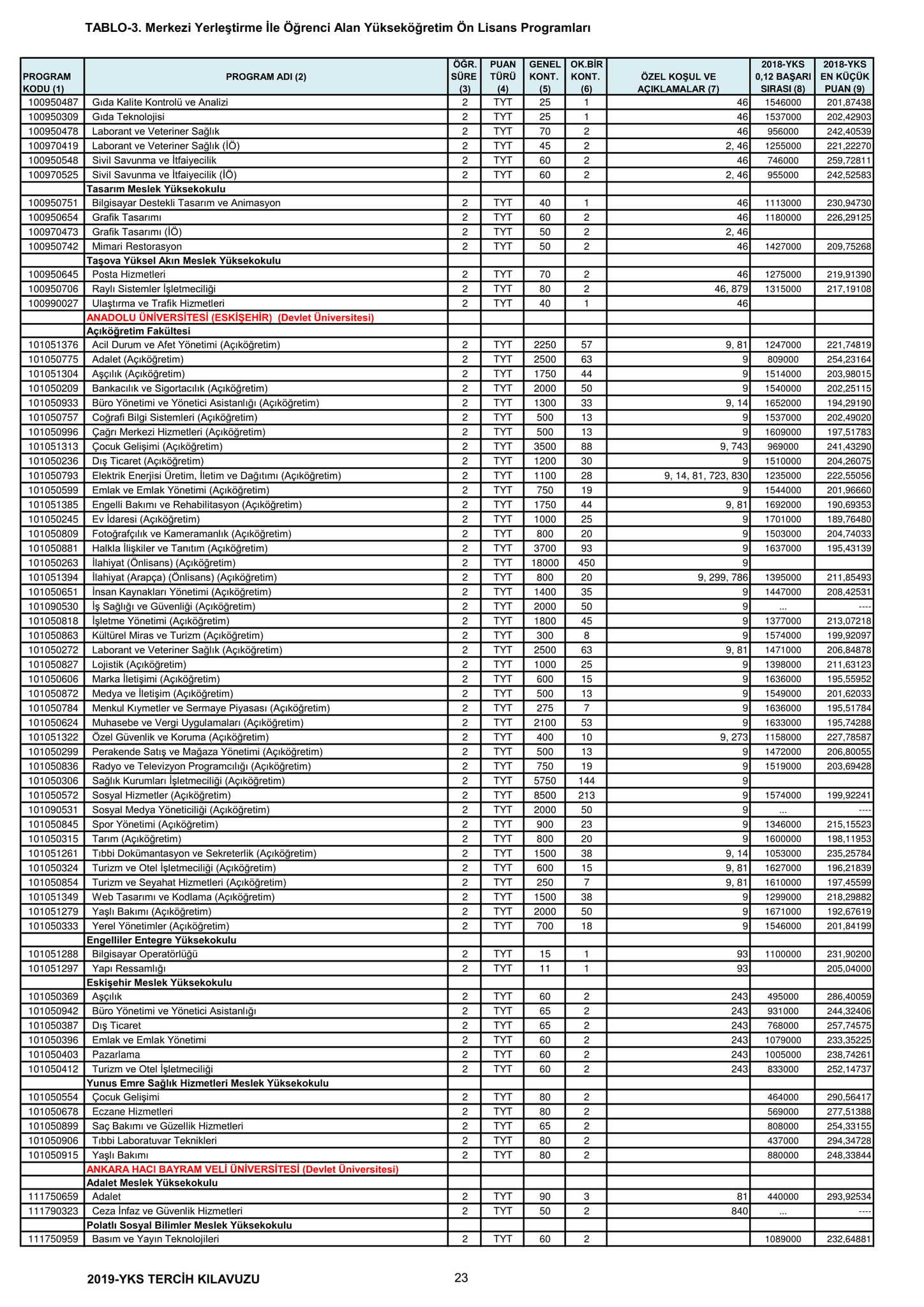 Üniversite taban tavan puanları 2019: YKS 2,4 yıllık lisans ön lisans üniversite taban puanları, başarı sıralamaları kaç? 23
