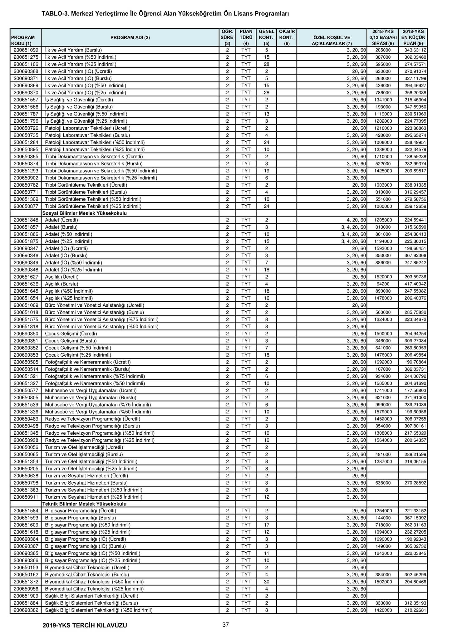 Üniversite taban tavan puanları 2019: YKS 2,4 yıllık lisans ön lisans üniversite taban puanları, başarı sıralamaları kaç? 14