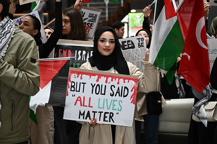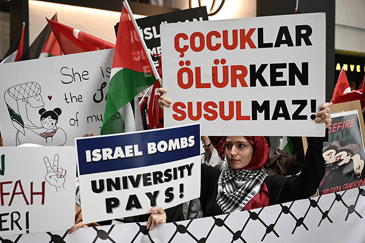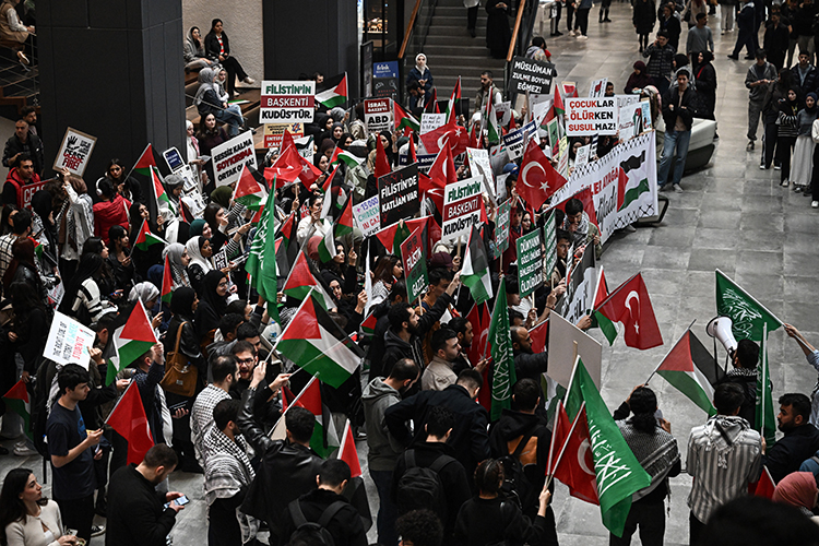 İstanbul Medipol Üniversitesi öğrencileri, İsrail'in Gazze'deki saldırılarına tepki göstermek için ABD'de Filistin dayanışma gösterisi düzenleyen öğrencilere destek verdi.
