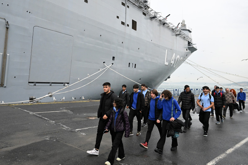 Çoğunluğu gençler ve ailelerden oluşan ziyaretçiler, alay sancağı çekilen TCG Anadolu'yu görebilmek için sabahın erken saatlerinden itibaren metrelerce kuyruk oluşturdu.