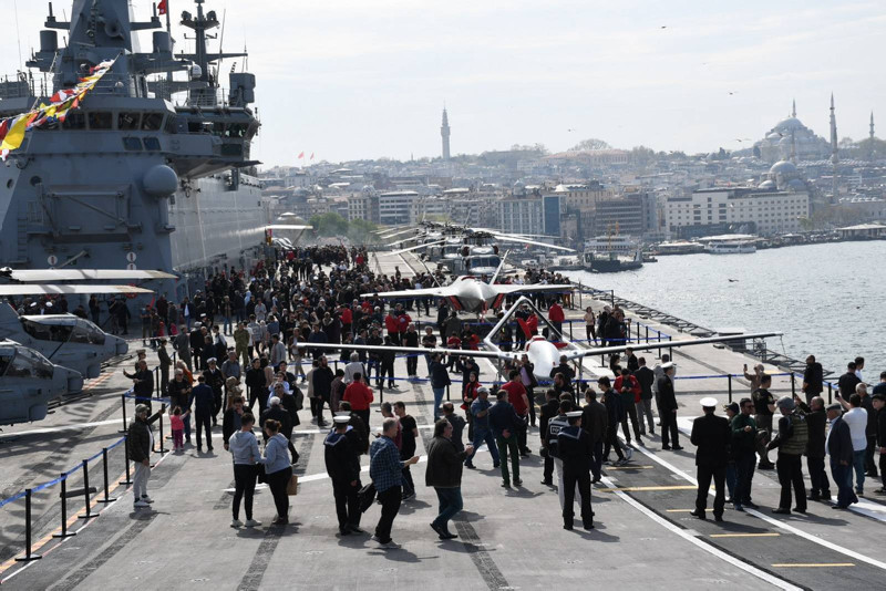 Sarayburnu Limanı'na demirleyerek yeniden ziyarete açılan Türkiye'nin en büyük askeri gemisi ve dünyanın ilk SİHA gemisini görmek isteyenler Sarayburnu Limanı'ndaydı. TCG Anadolu'yu 19 Mayıs Atatürk'ü Anma, Gençlik ve Spor Bayramı'nda ziyaret etmek isteyenler yoğun ilgi gösterdi.