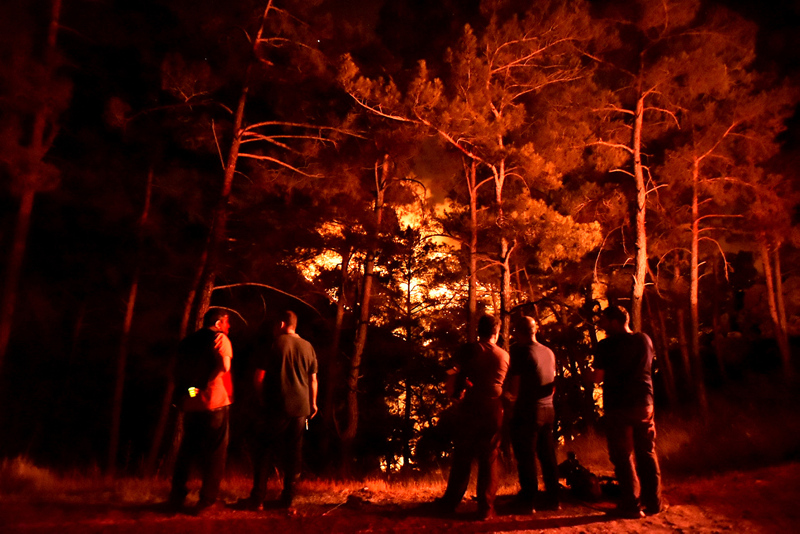 Söndürme helikopterleri ve uçaklar sabahın ilk ışıklarıyla birlikte müdahaleye yeniden başladı. Bölgede, çok sayıda arazöz ve orman işçisiyle yangına müdahale ediliyor.