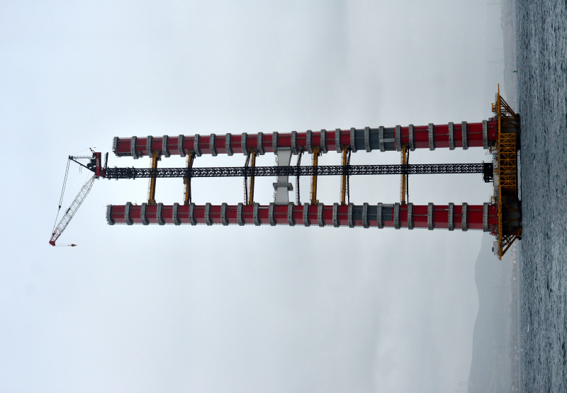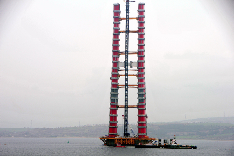 Deniz içindeki blokların yerleştirilmesiyle köprünün ayakları yükselerek Türk bayrağını simgeleyen kırmızı beyaz renkler açıkça görülmeye başlandı, 32 bloktan 24'ünün yerleştirilmesiyle 230 metre yüksekliğe ulaşıldı. (Vatandaşların projesinin fotoğraflarını çekmesi dikaktlerden kaçmadı.)