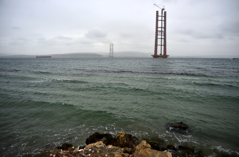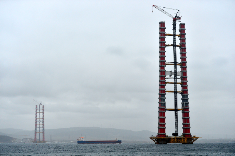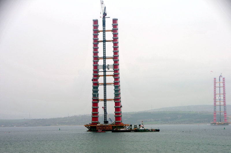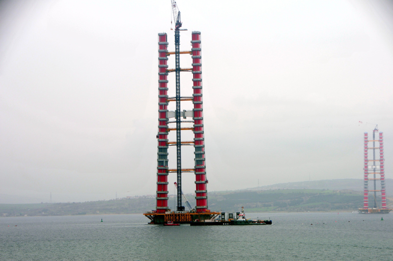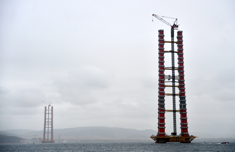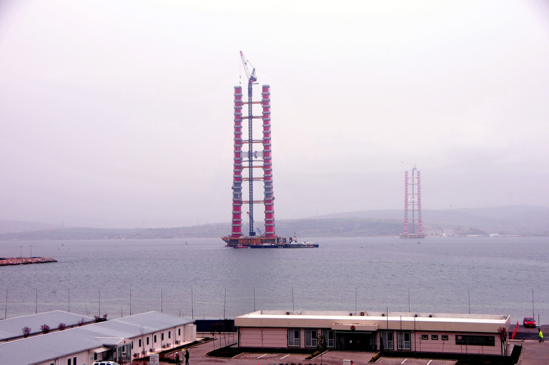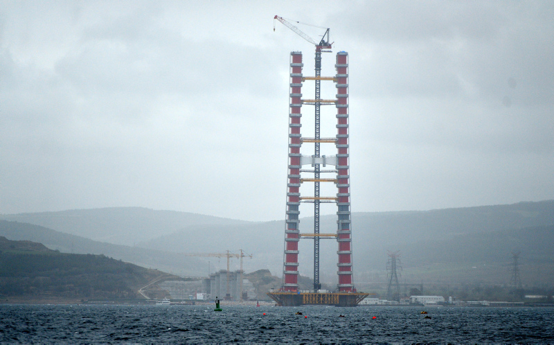 Yapımı devam eden Çanakkale Köprüsü’nün kule yüksekliği 230 metreye ulaştı
