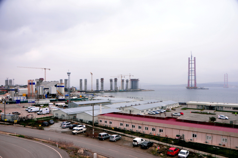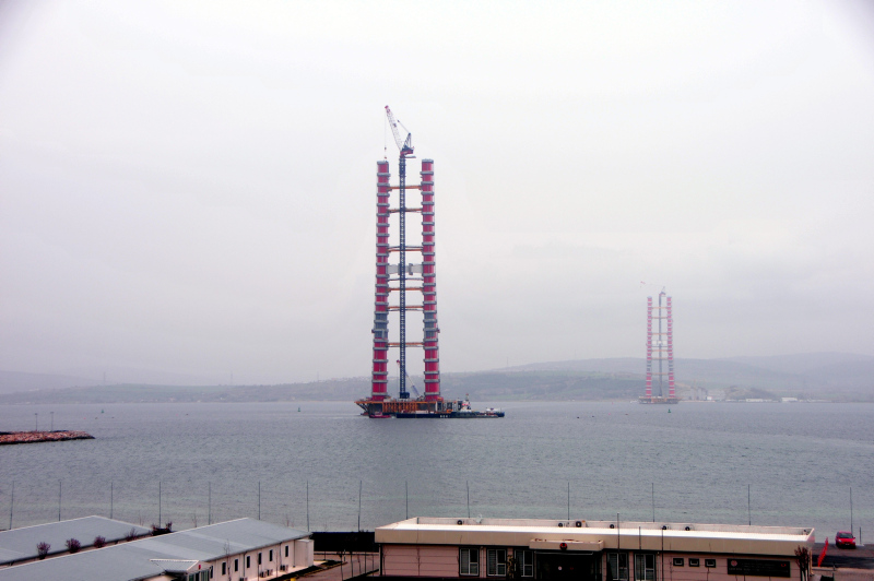 Deniz içi çalışmaların ardından su üstünde ve kara bağlantı noktalarında yapılan çalışmalarda önemli aşama kaydedildi. Sütlüce ve Şekerkaya şantiyelerinde, köprü ayaklarına vinç yardımıyla bağ kirişi montajlarının yapılmasının ardından kule blokları üst üste konulmaya devam ediyor.