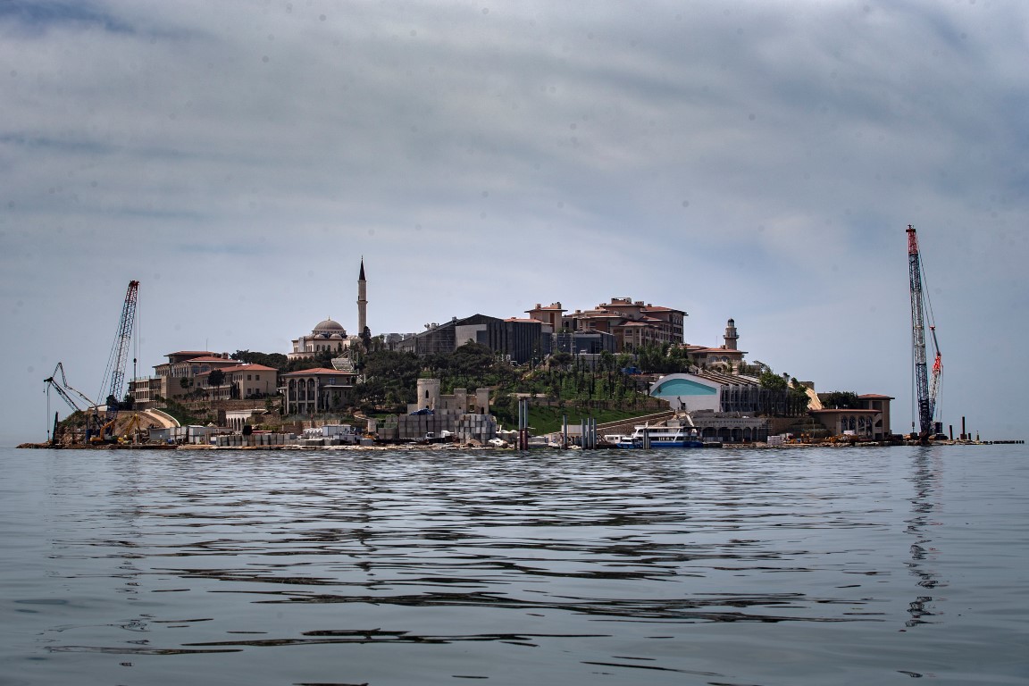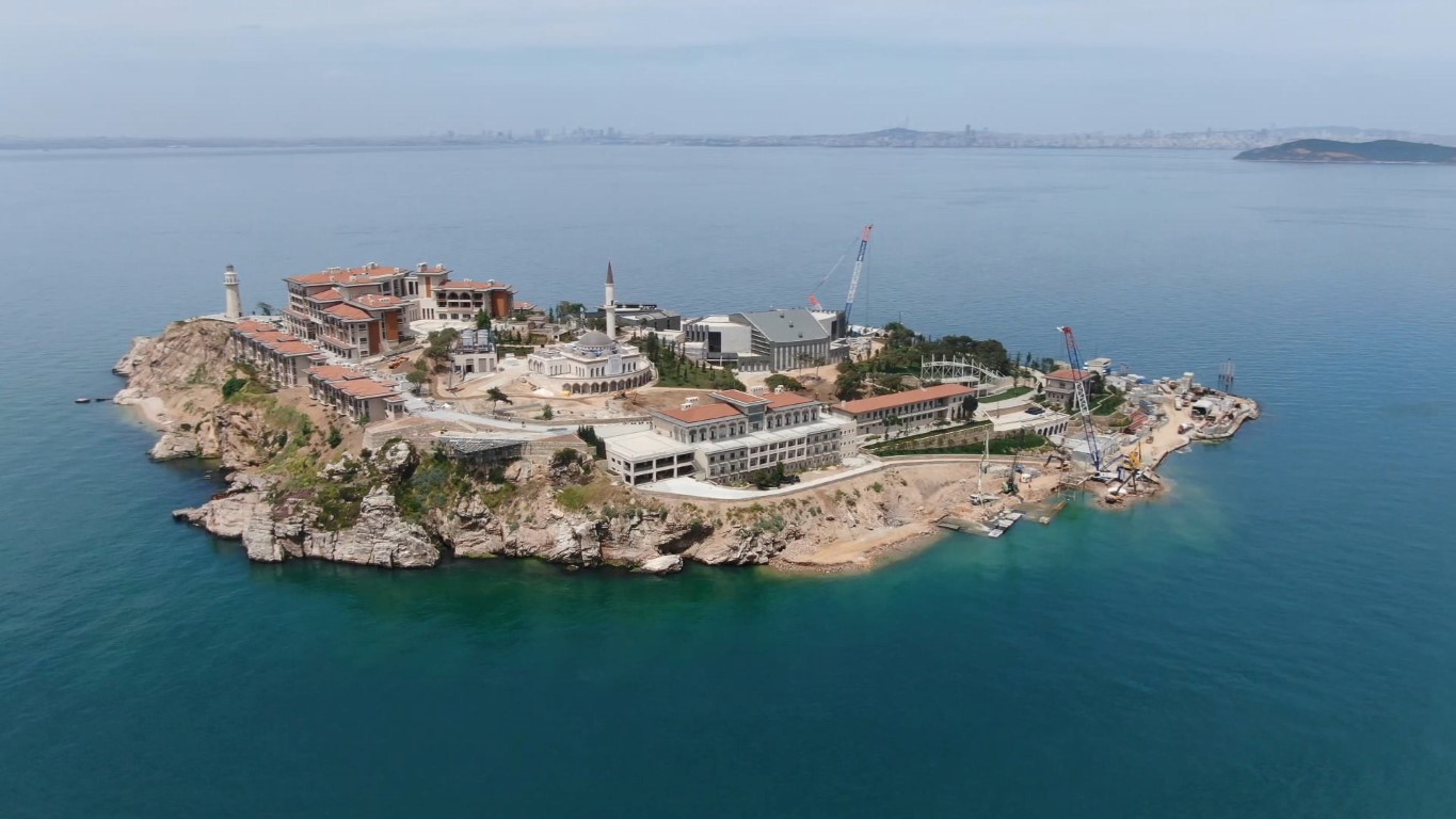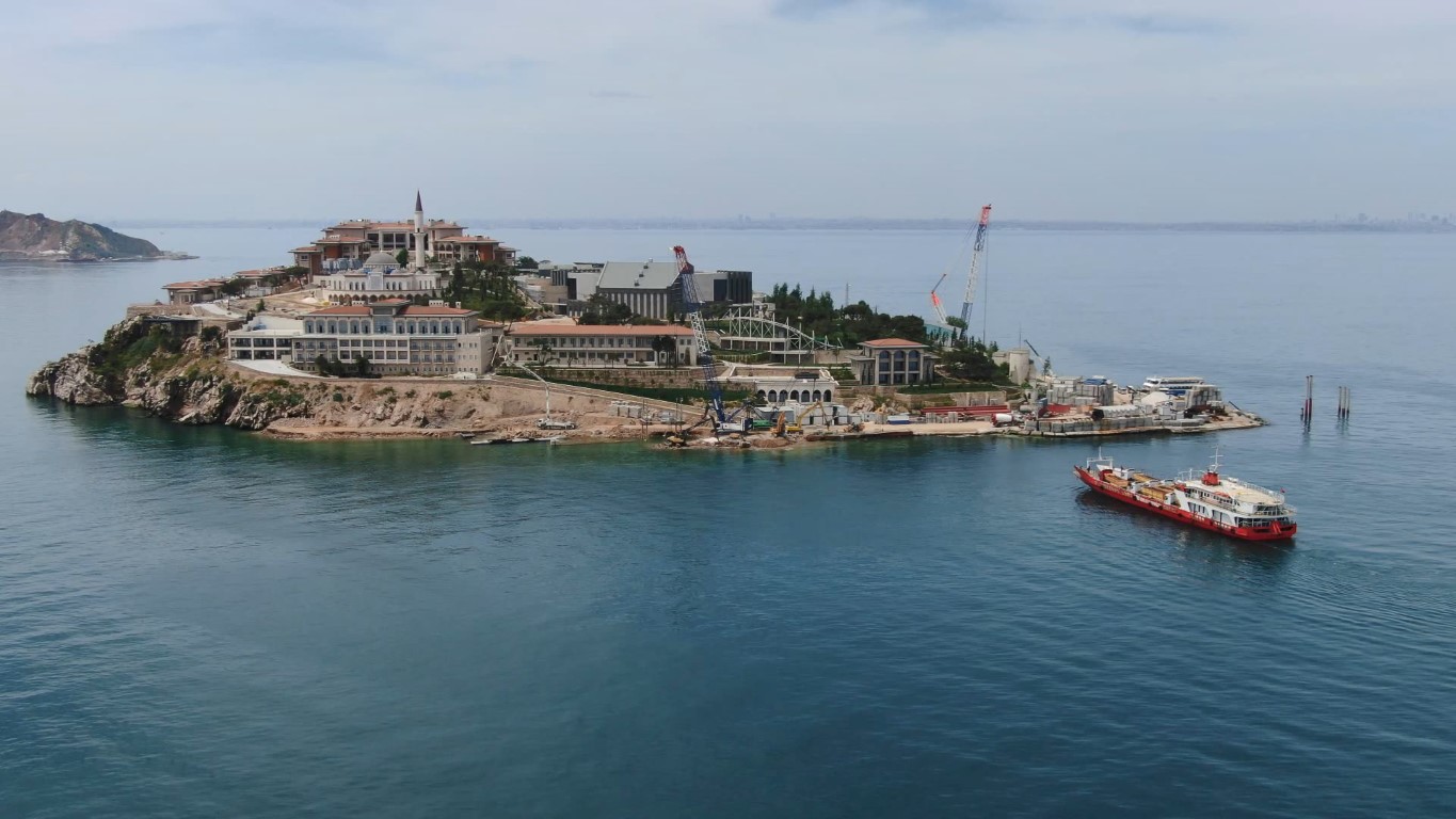 Yassıada'nın son durumu görüntülendi. İnşaatın büyük ölçüde tamamlandığı, sahil kesiminde bazı bölümlerde işçilerin yoğun olarak çalıştığı görüldü.